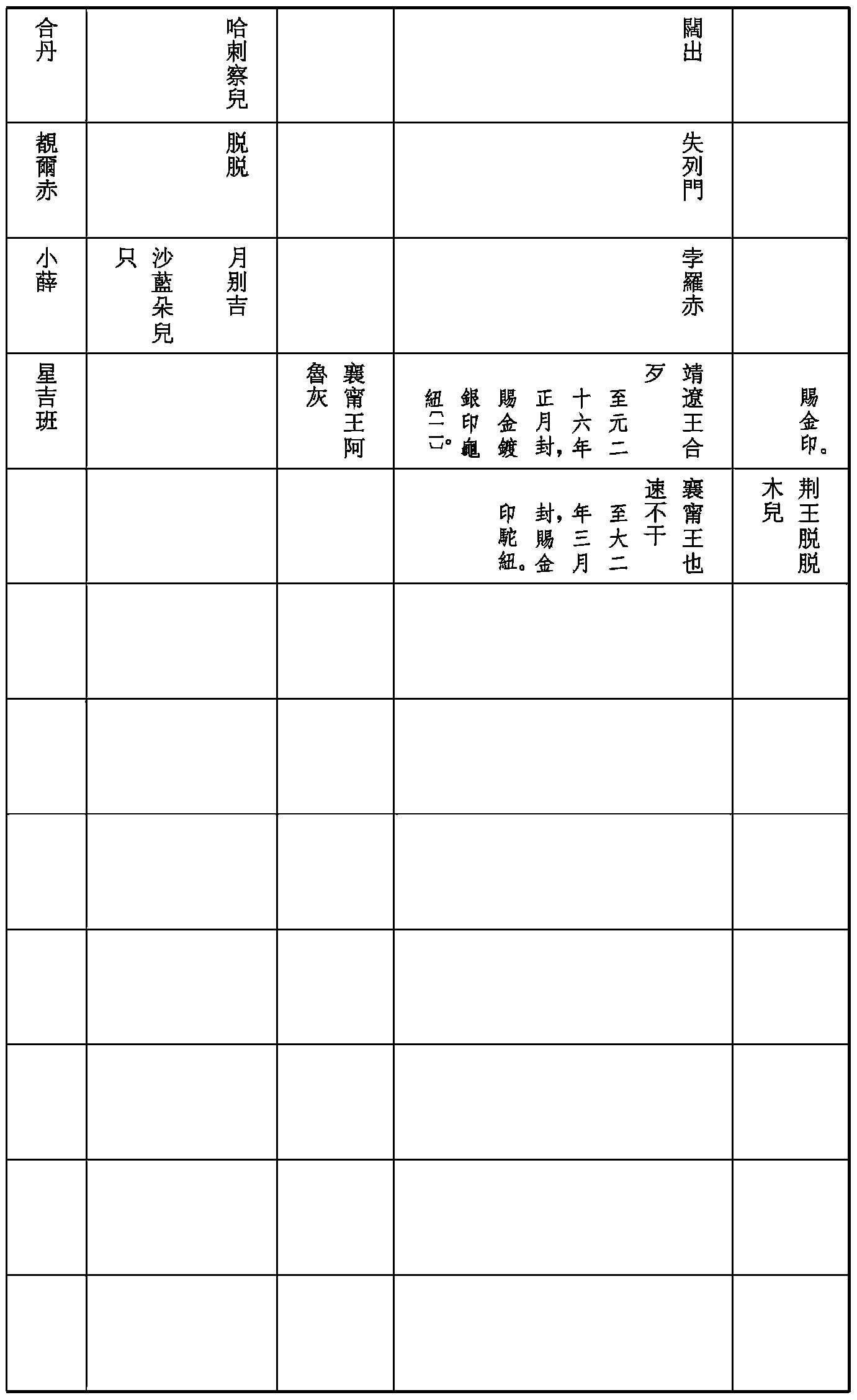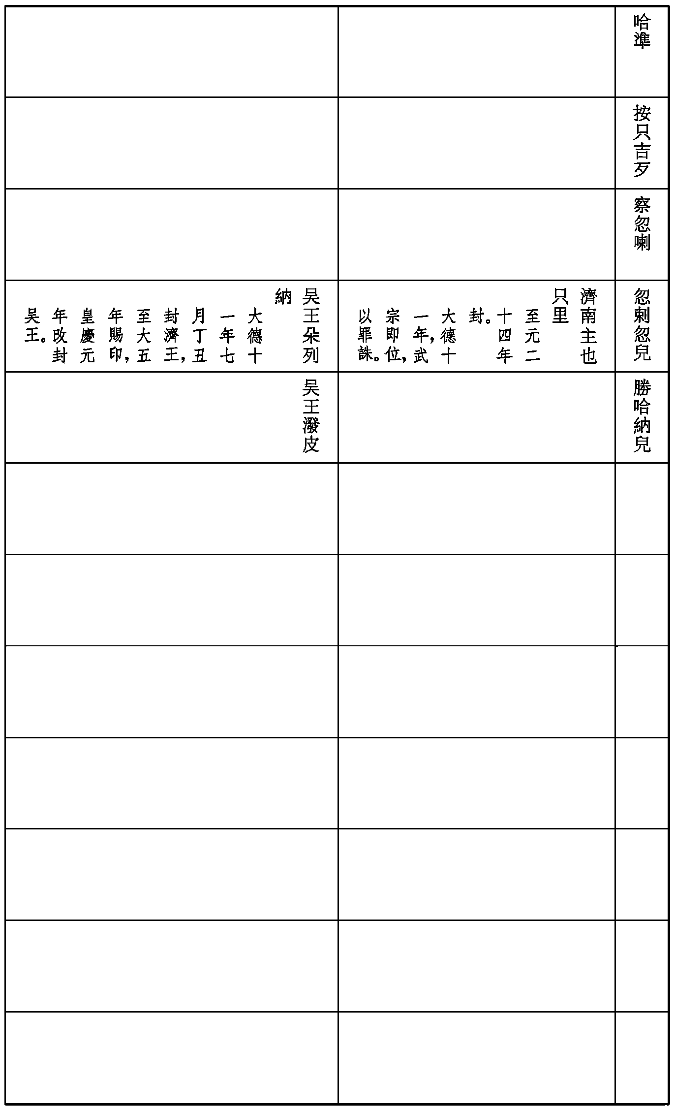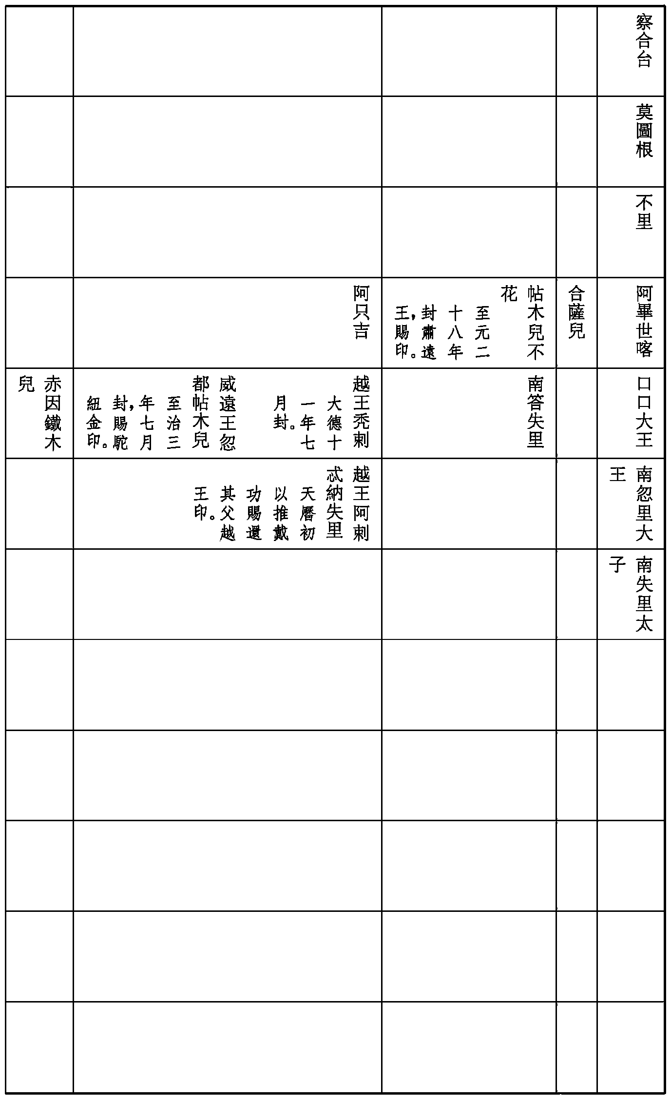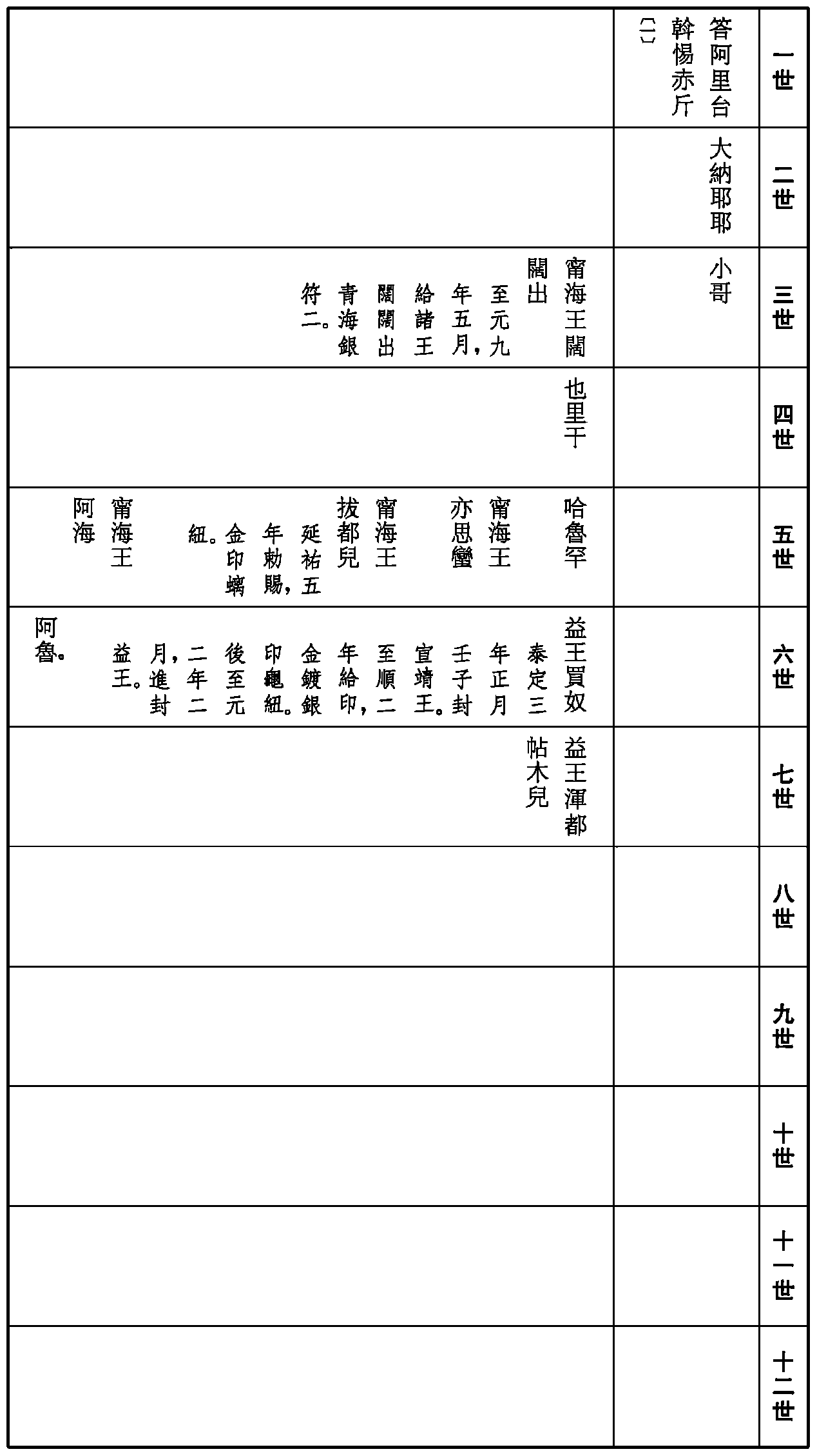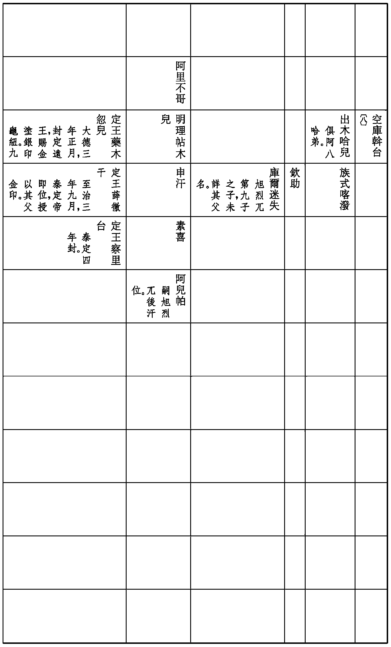 [一]「答阿里台斡惕赤斤」,「赤」原作「亦」,據本表上文改。