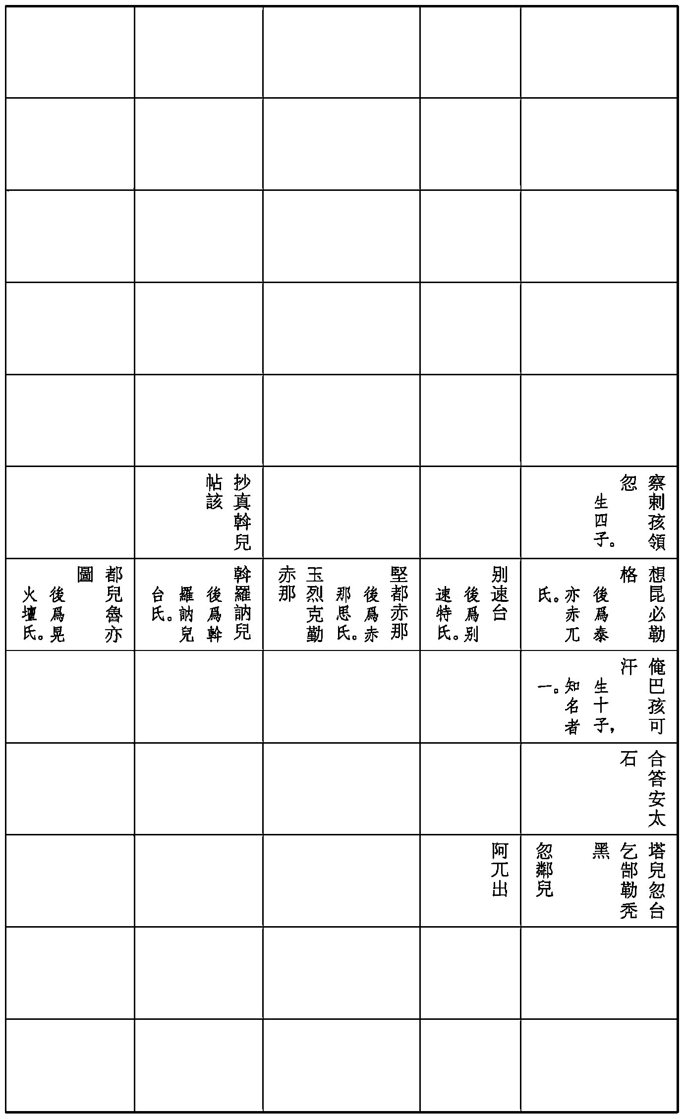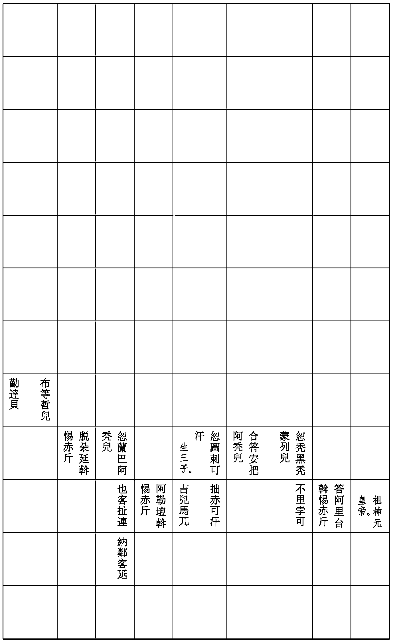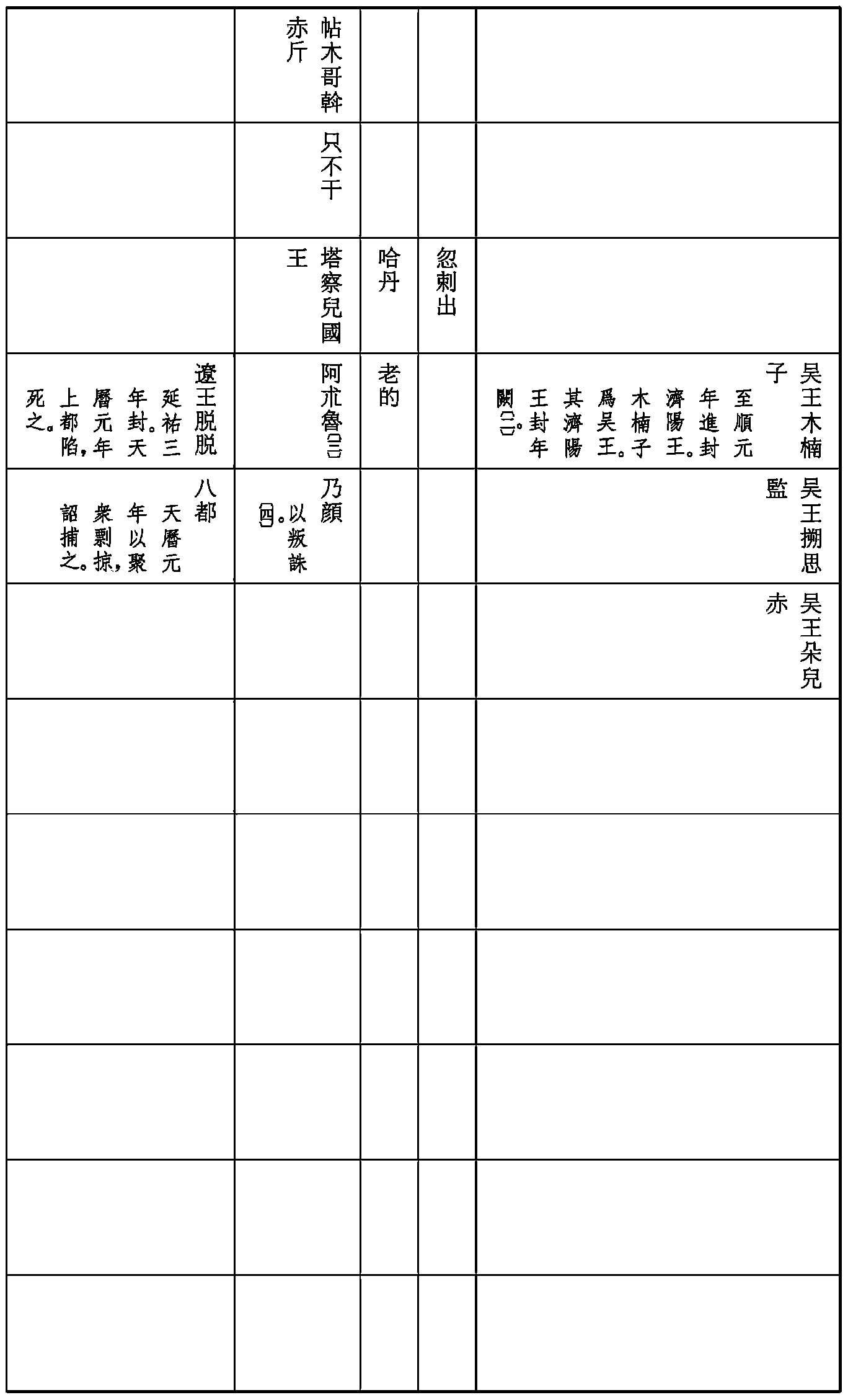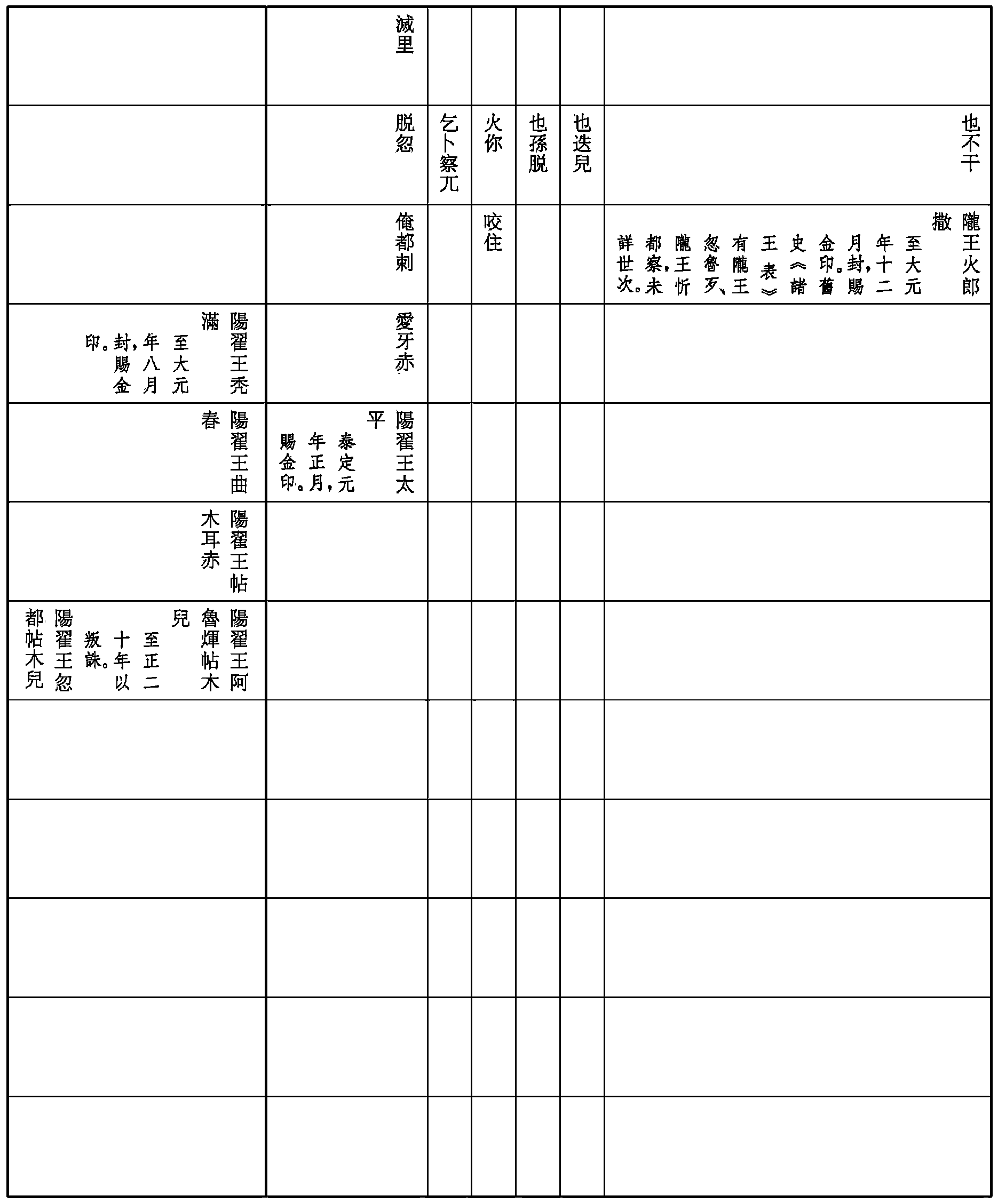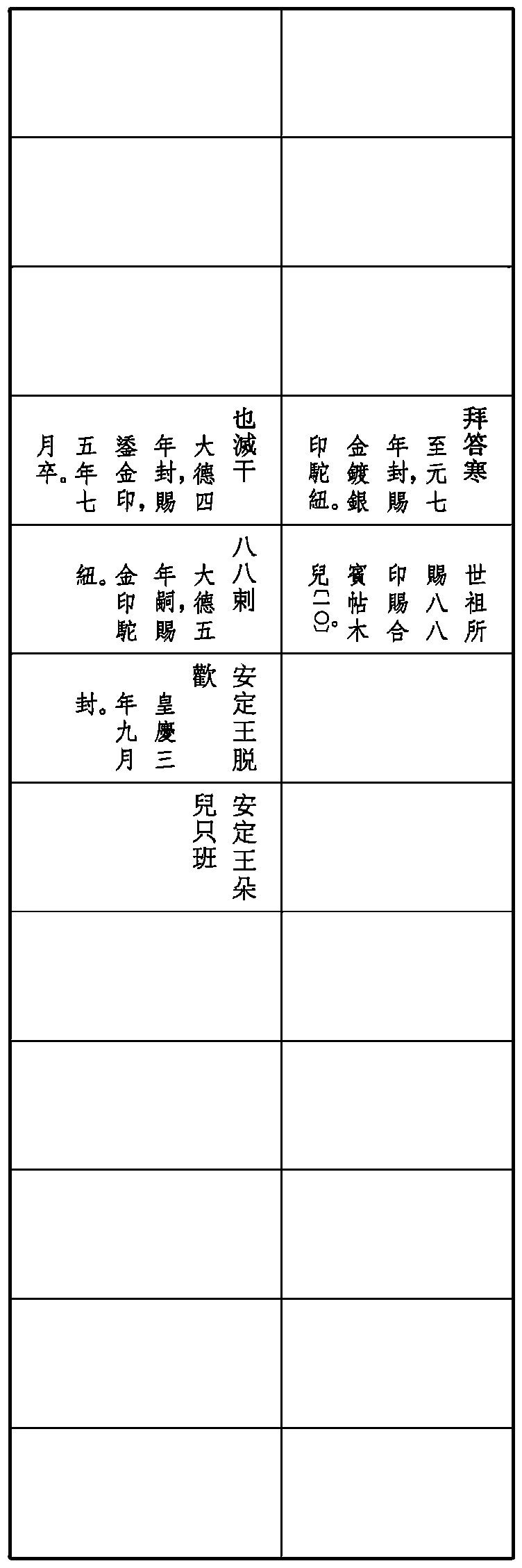 [一]「答阿里台斡惕赤斤」,「赤」原作「亦」,據本表上文改。