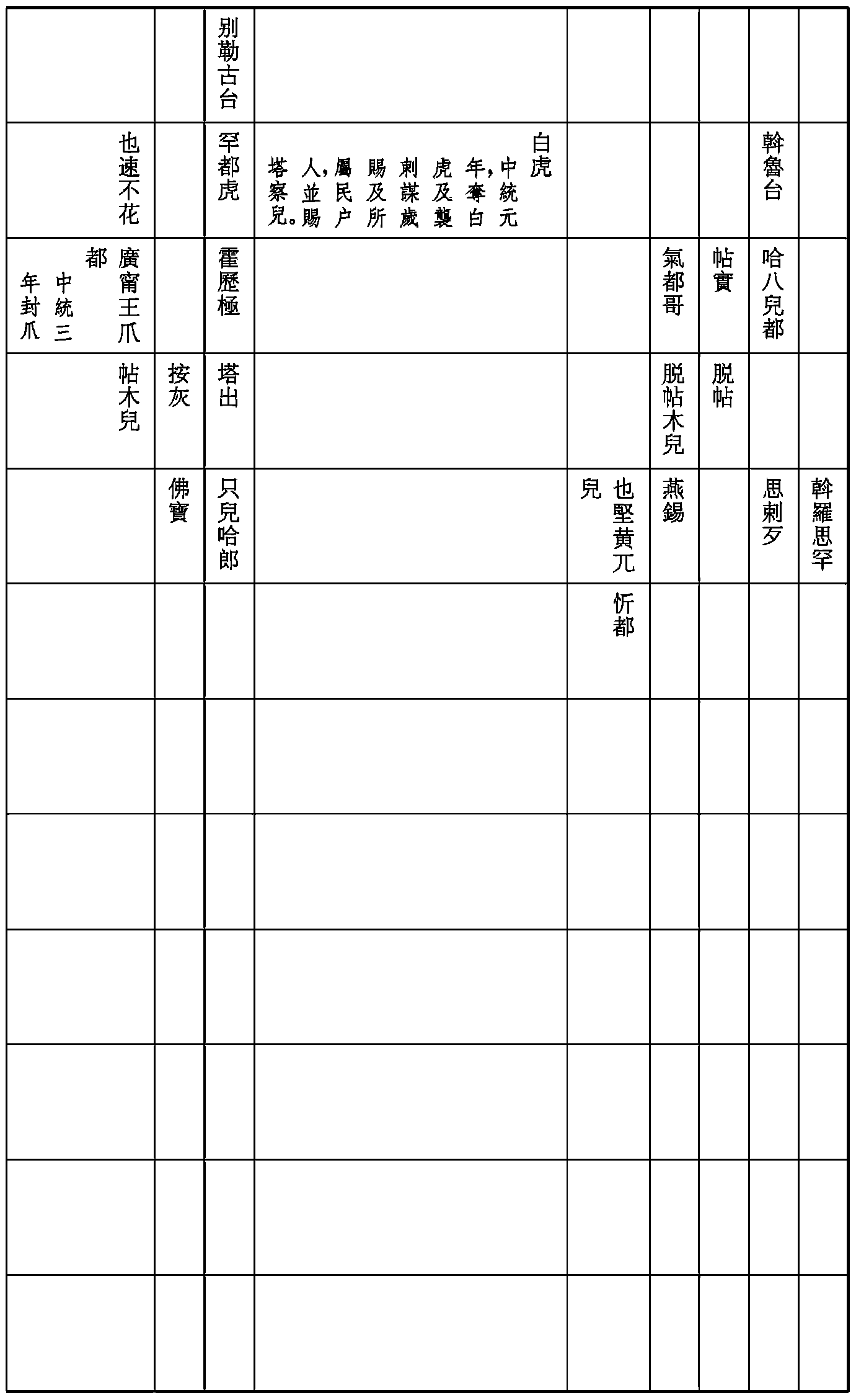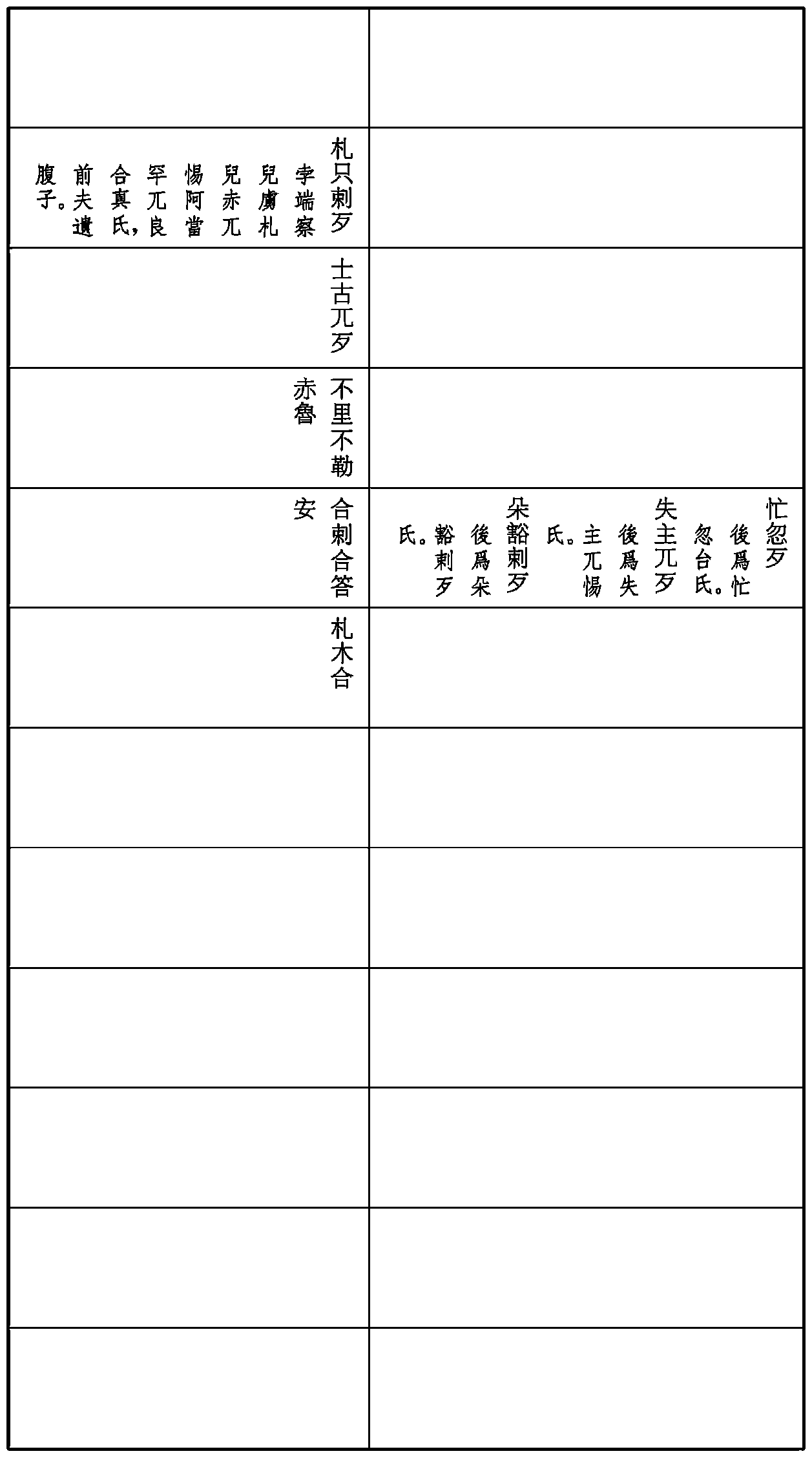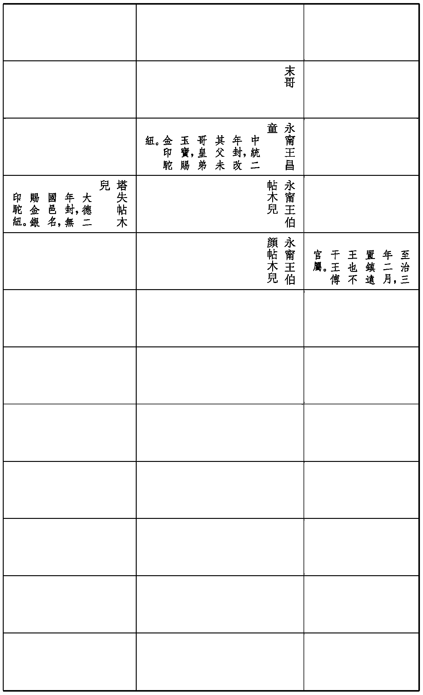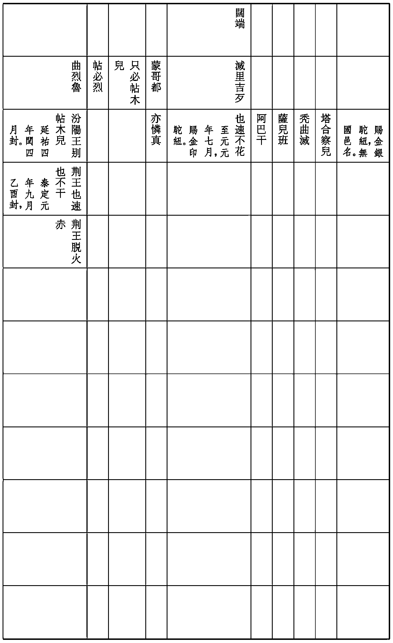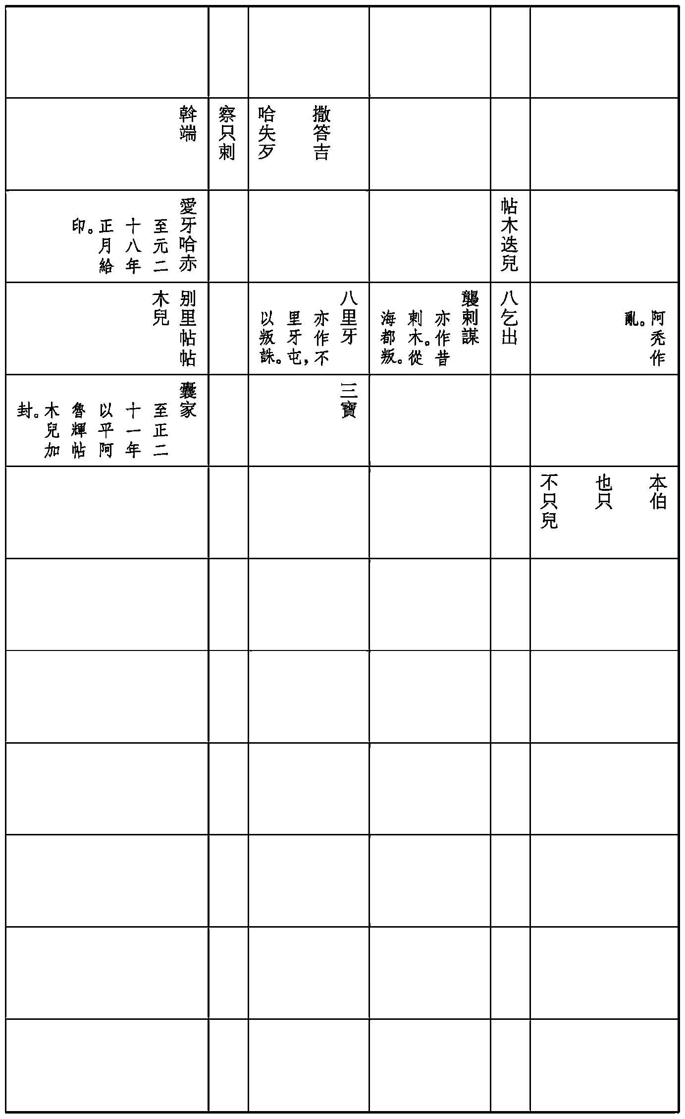 [一]「答阿里台斡惕赤斤」,「赤」原作「亦」,據本表上文改。
