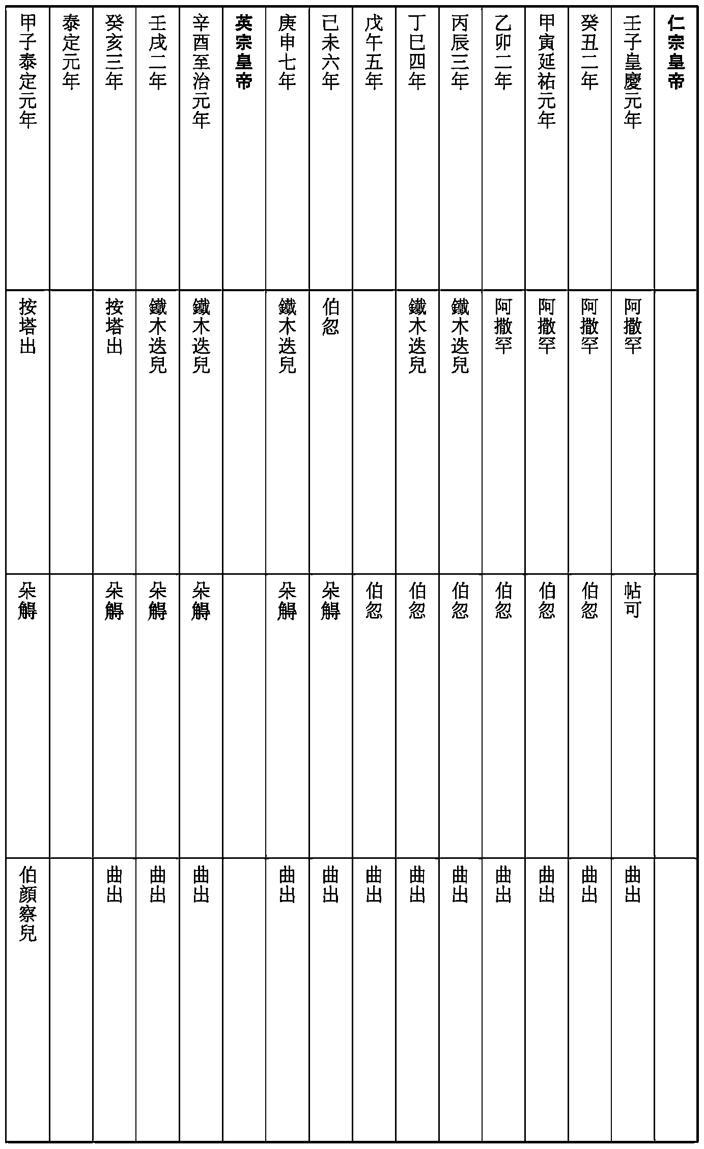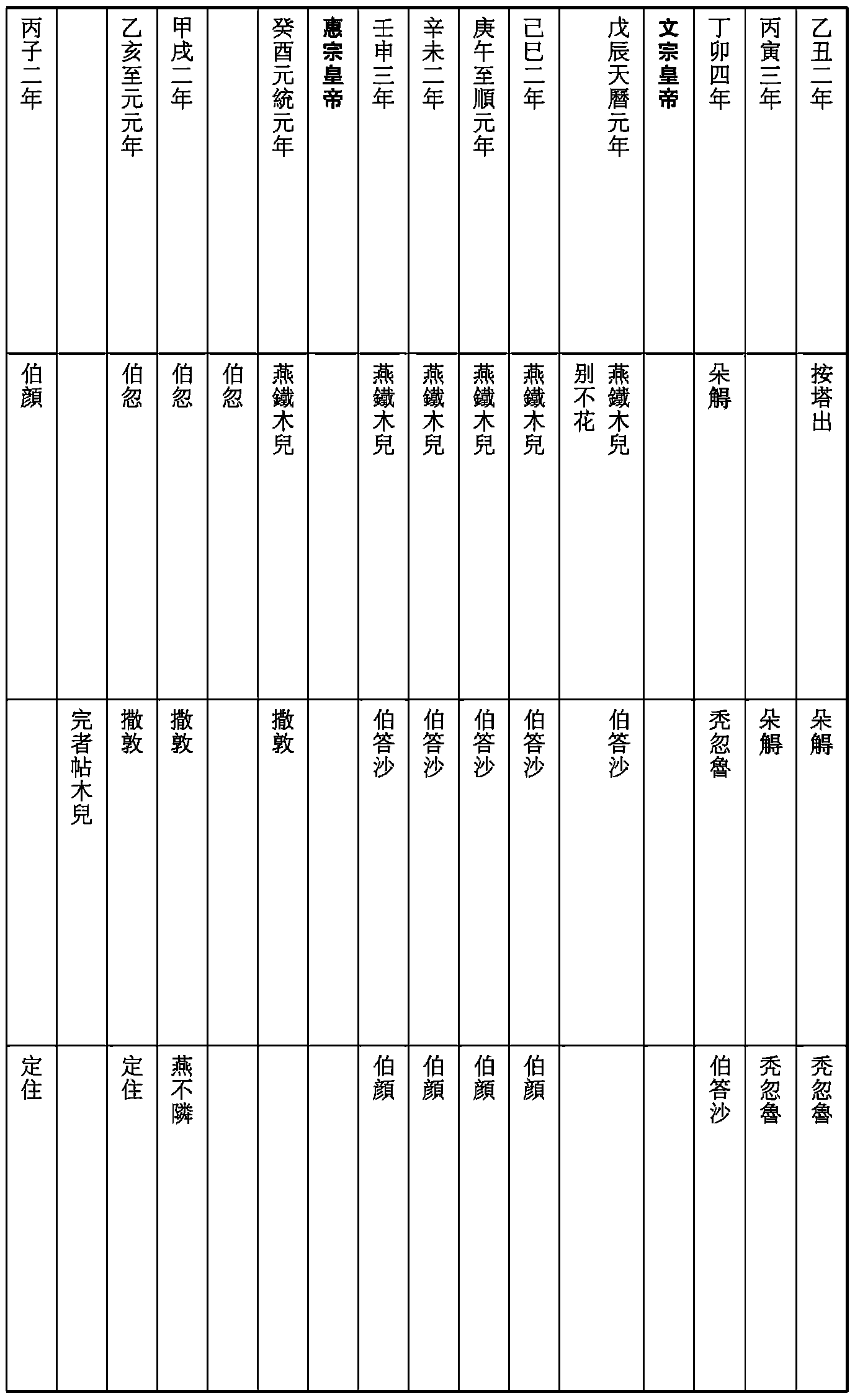 元之制,太師、太傅、太保爲三師,太尉、司徒、司空爲三公。然大司徒、司徒不常置,終元之世,授太尉者一二人而已,非釋老無授大司空、司空者。至太師、太傅、太保,太祖之時已備其官,成宗以後遂爲論道經邦之職,故天順中修《經世大典》以太師、太傅、太保爲三公,不復稽祖制云。作《三公表》。