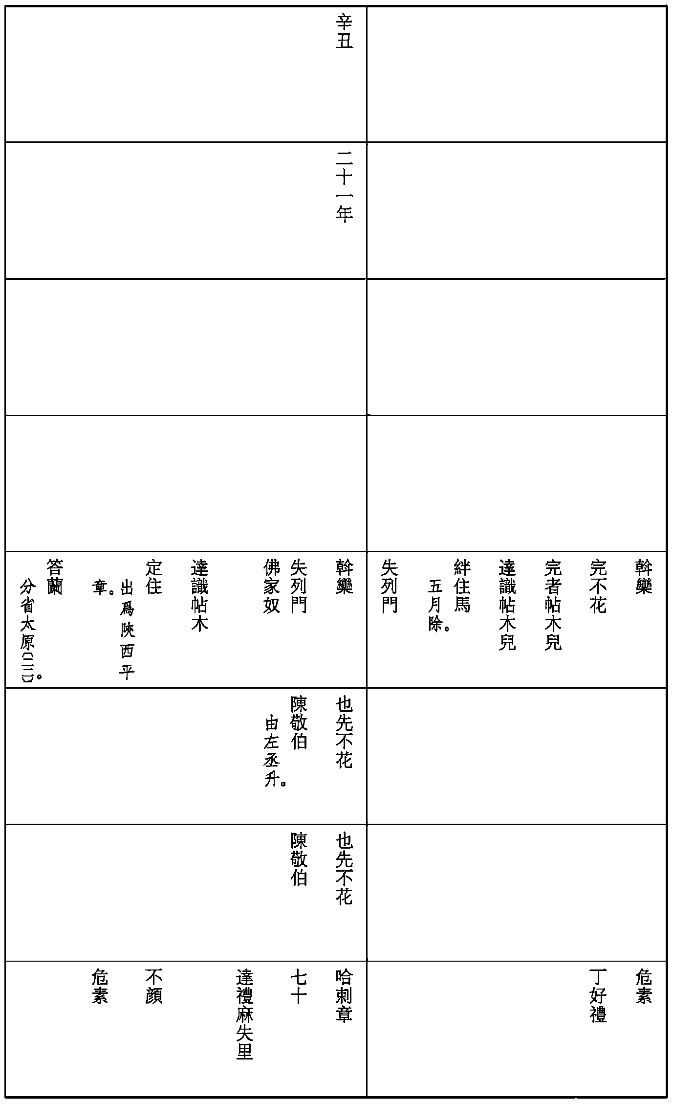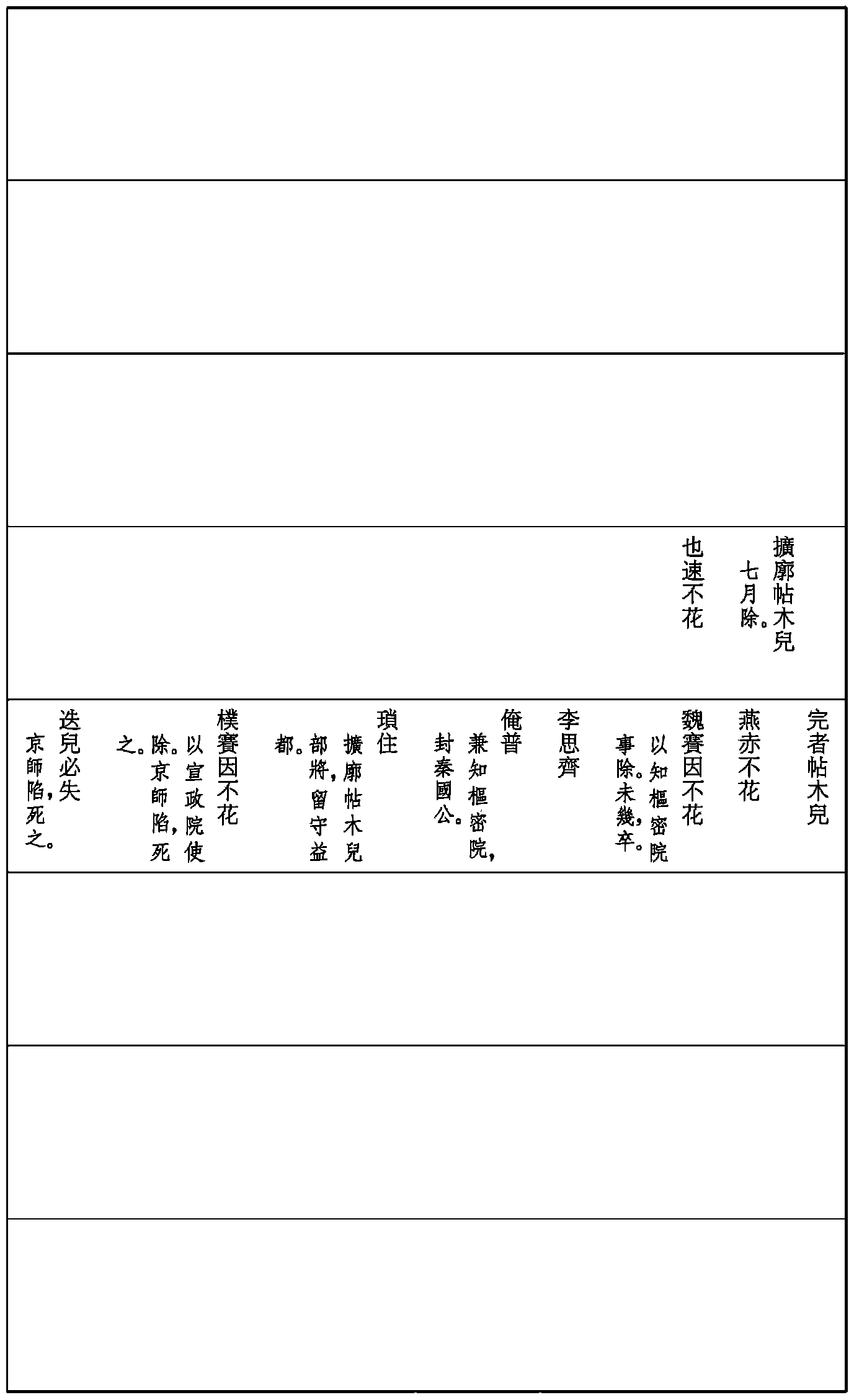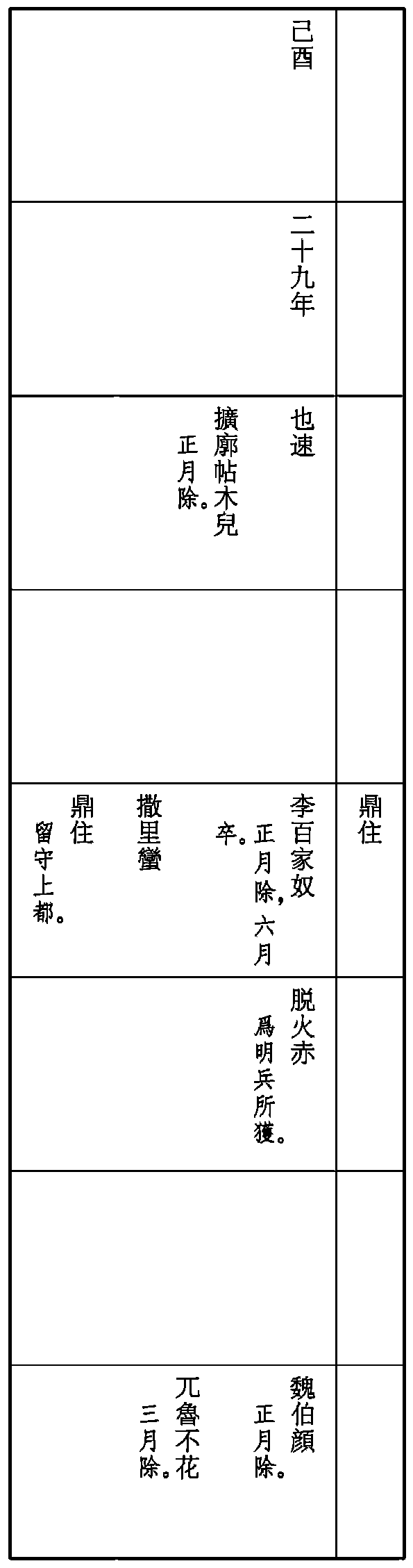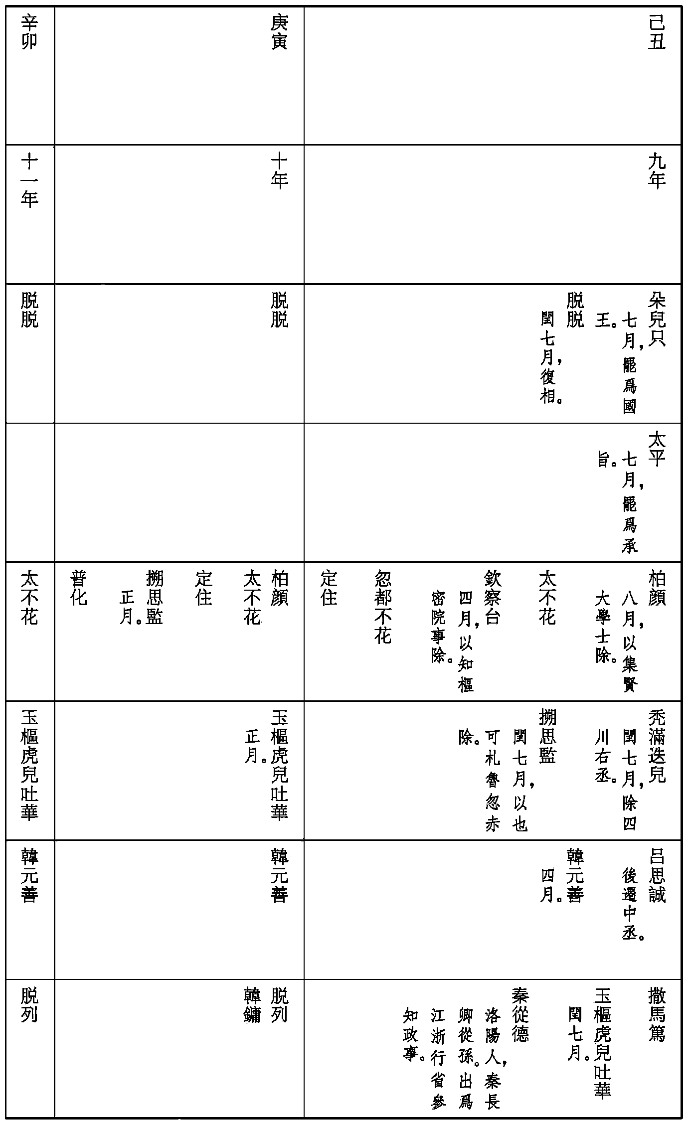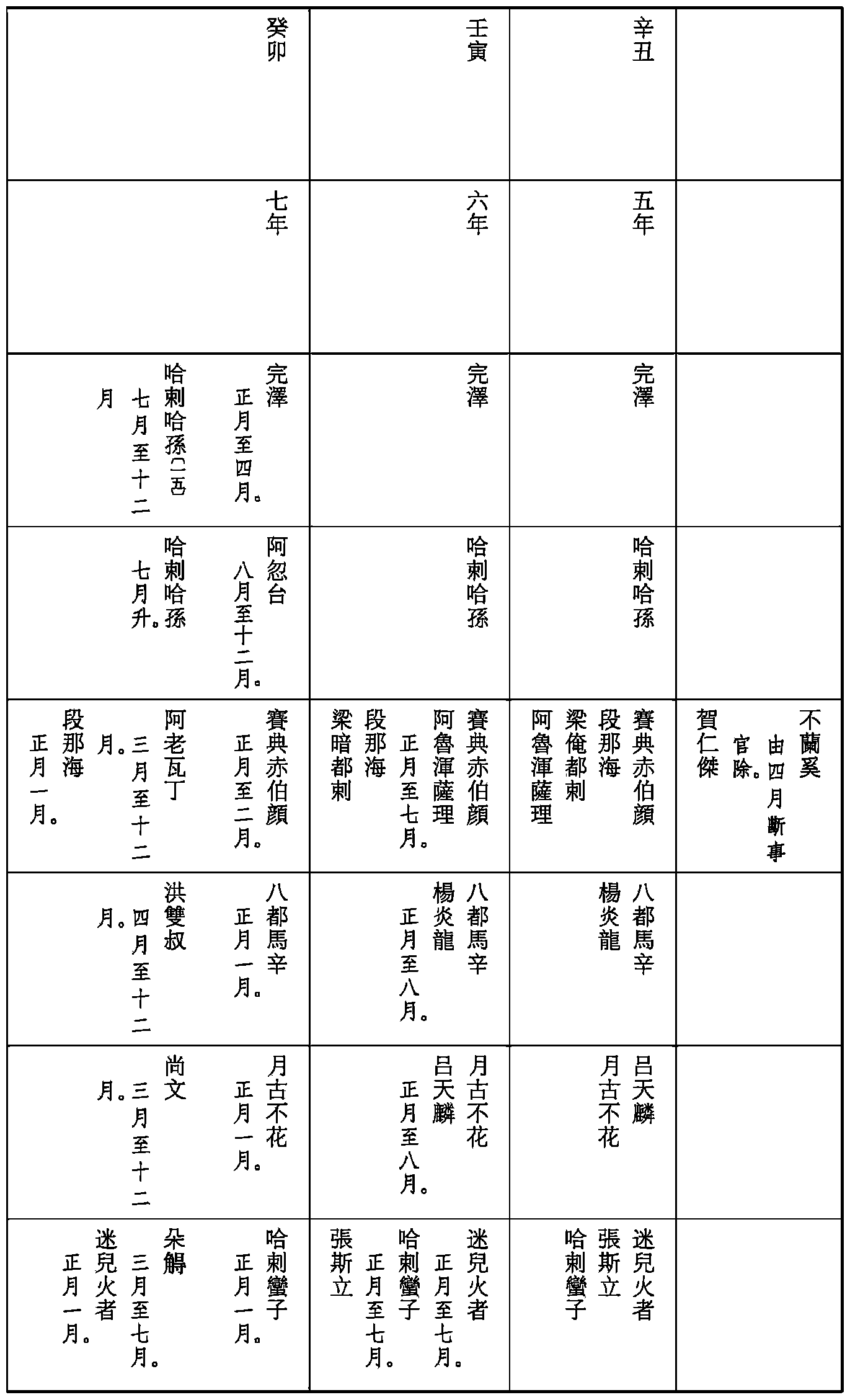[一〇]「三月免署商議省事」,「署商議省事」五字原誤在下欄「咱喜魯丁」下。按《元史》卷一七本紀第十七《世祖十四》載「平章政事麥朮丁以久居其任,乞令免署,惟食其禄,與商議中書省事」,今據以移正。