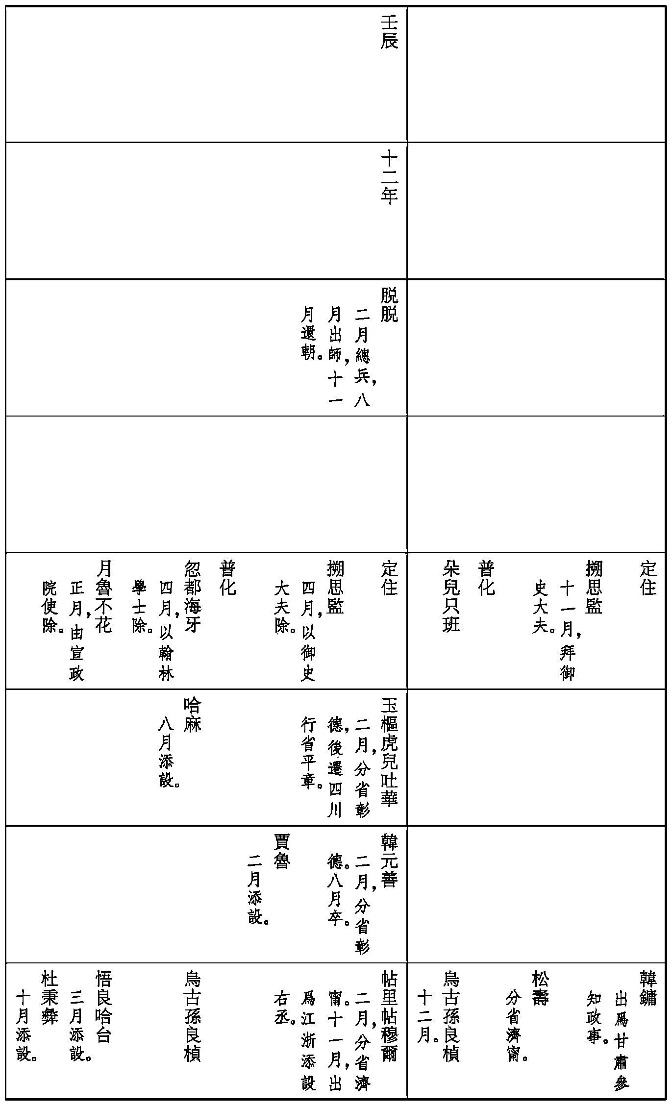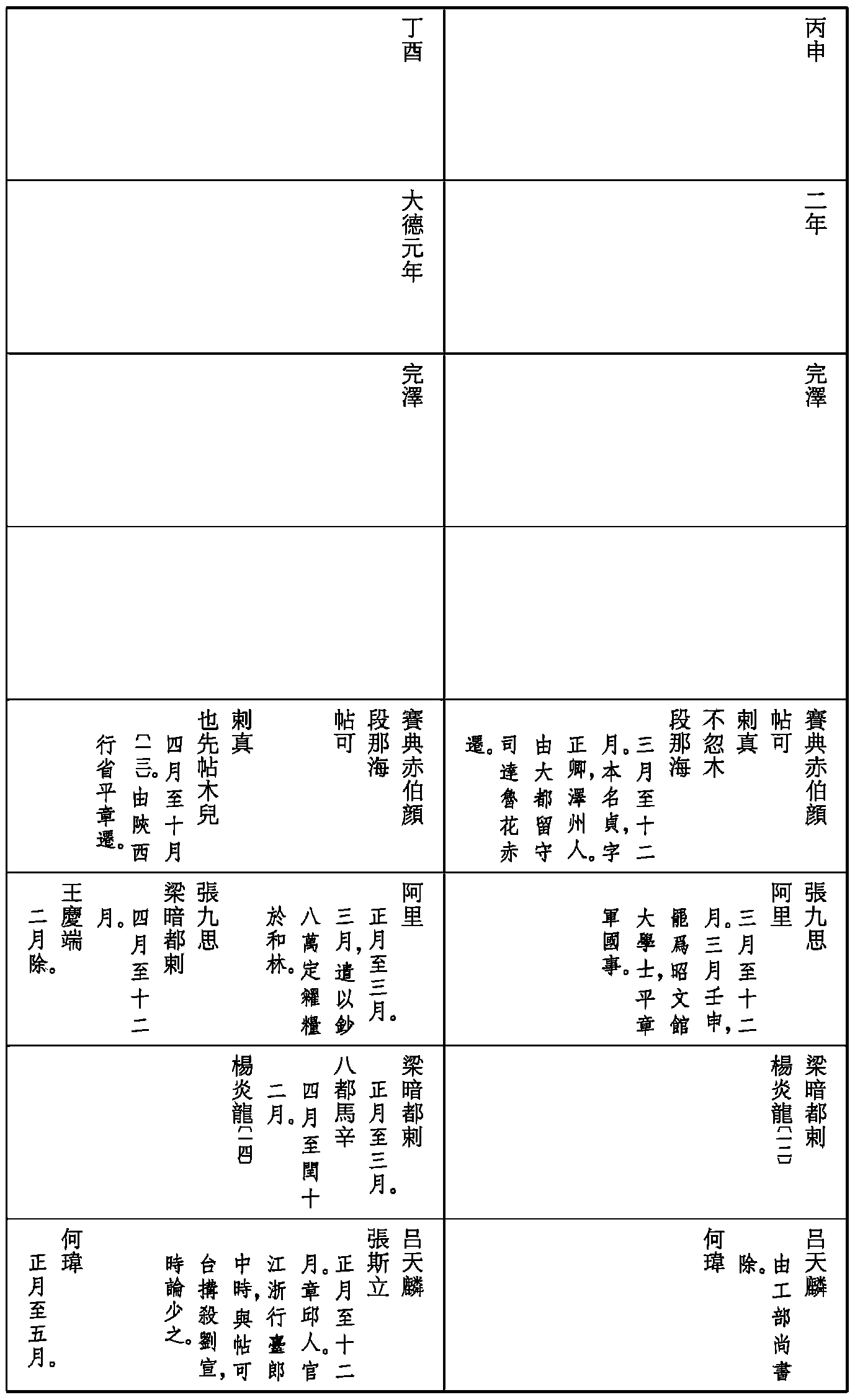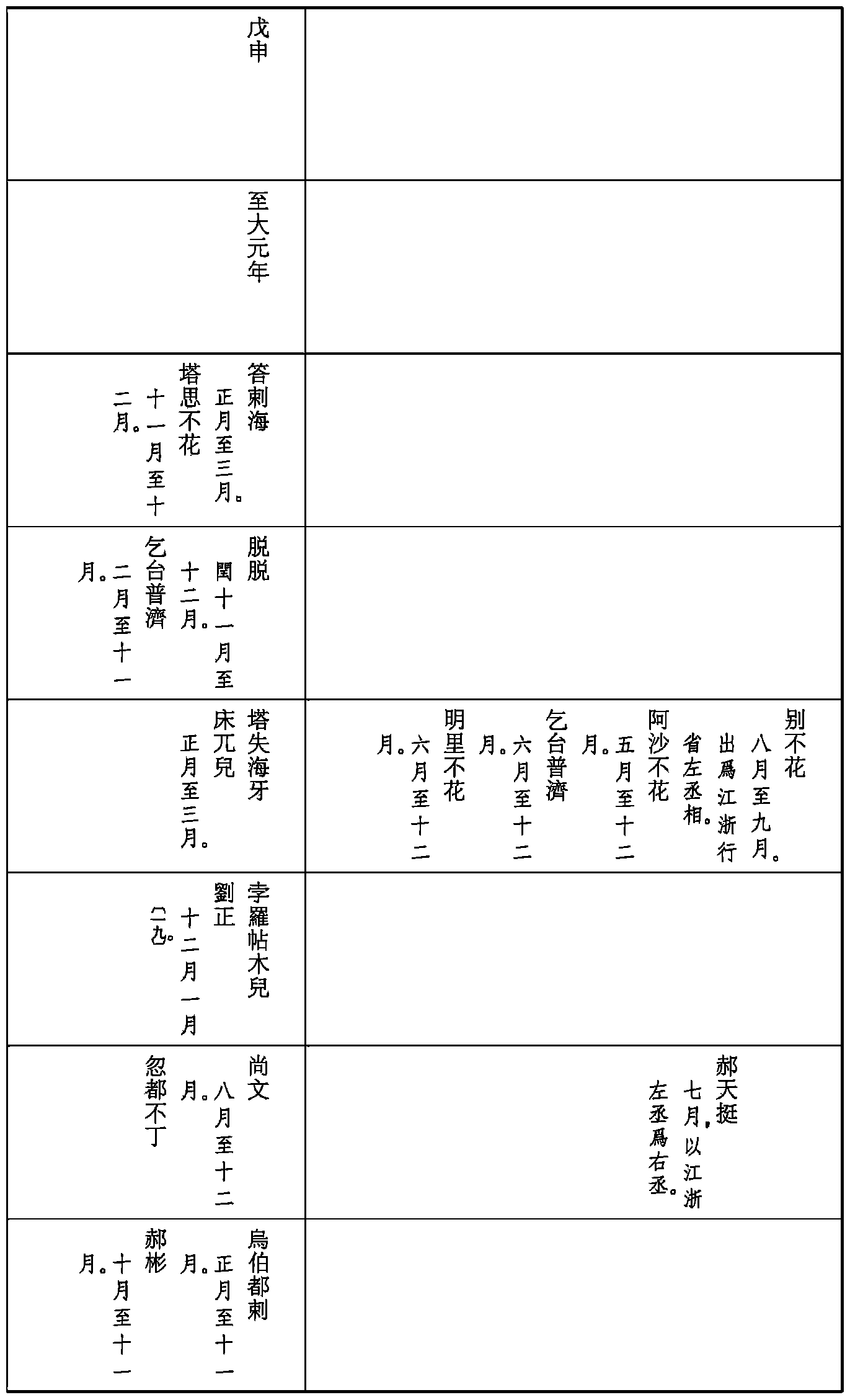 [一八]「十二月」,原作「月二月」,據《元史》卷一一二表第六上《宰相年表》改。「九月」,《元史》表作「八月」。