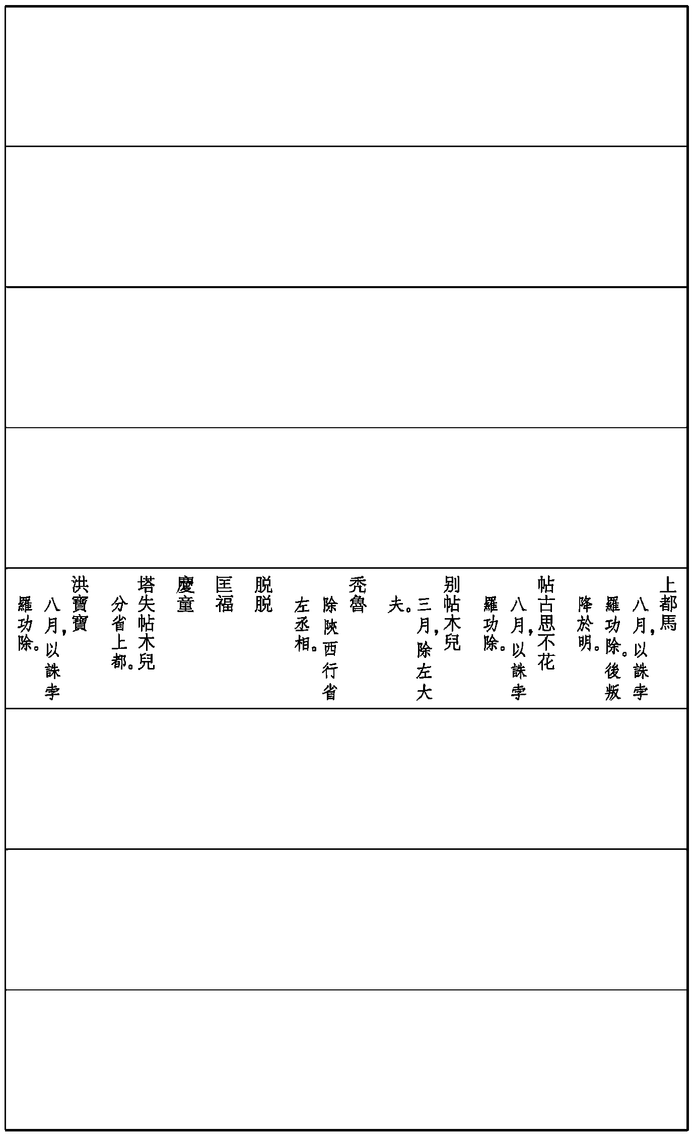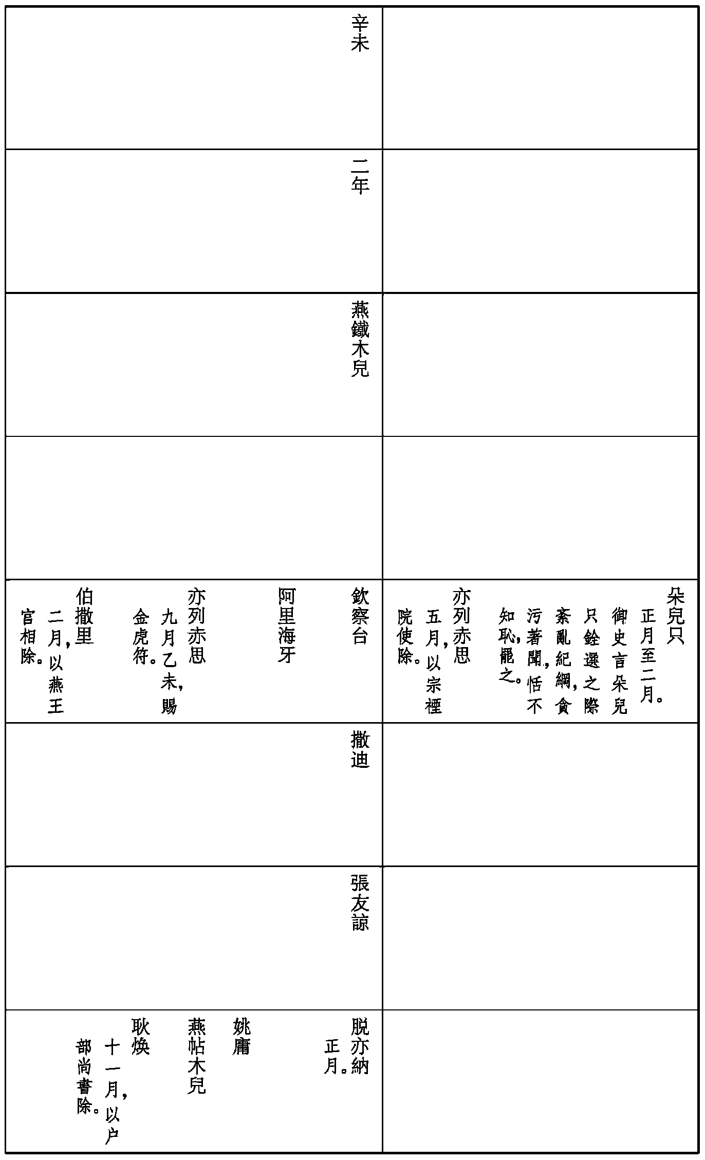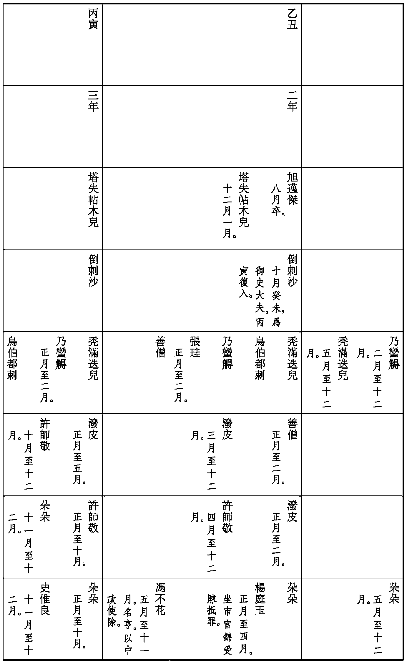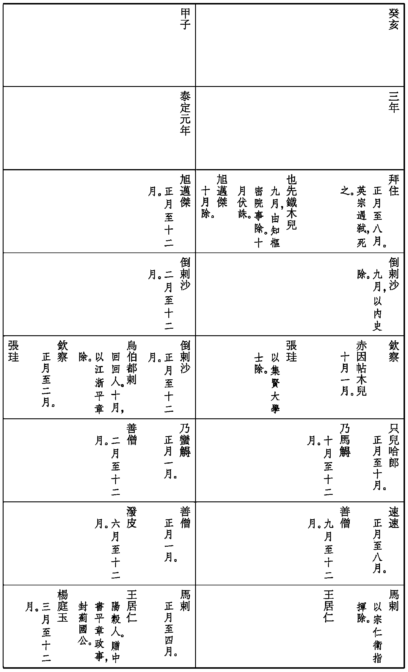 [二]「左丞相」,原作「山丞相」。按據上文忽都察兒上年十一月除左丞相,至此降爲平章政事。「山」顯係「左」之訛,因改。