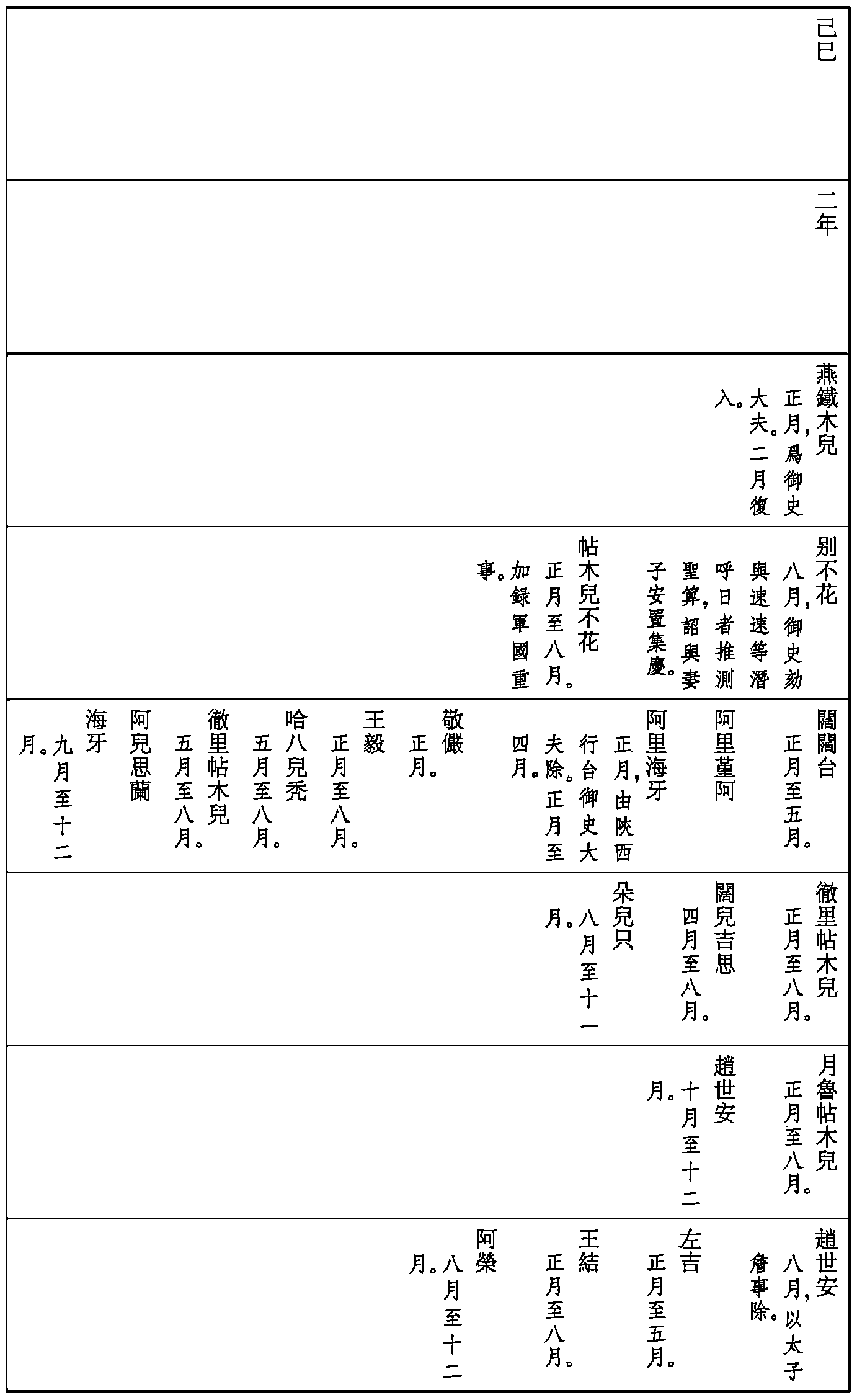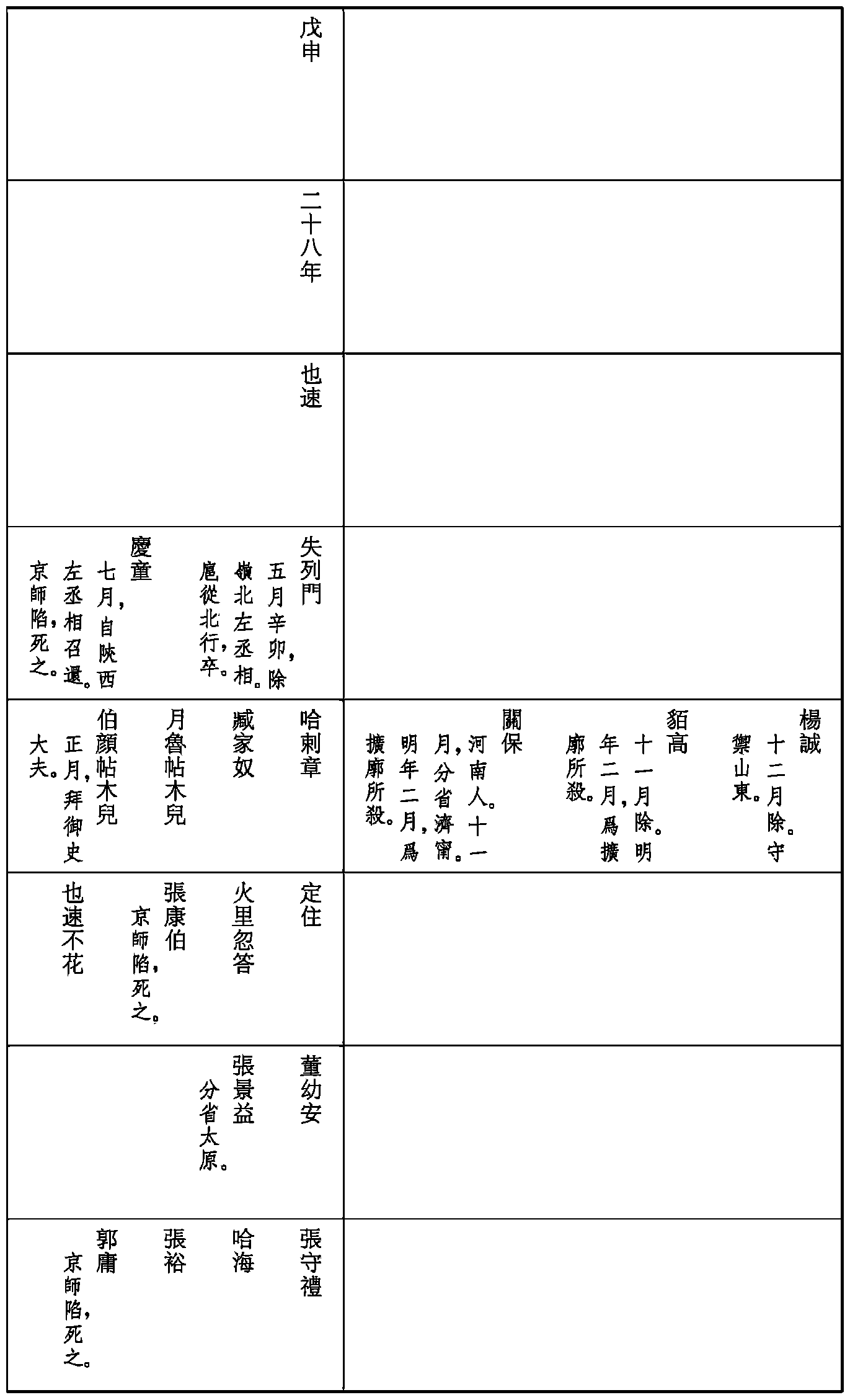 [二一]「實理門」,原作「實理問」,據《元史》卷一一三表第六下《宰相年表二》及本表下文改。