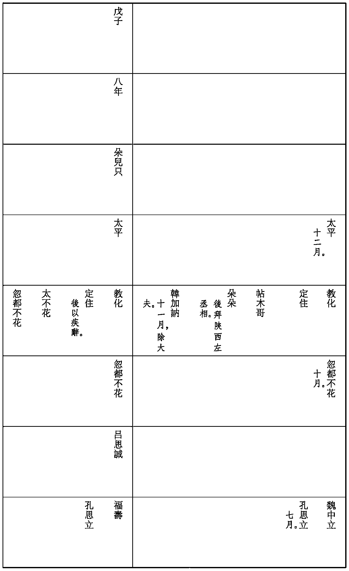 [六]「夾谷」,原作「麥谷」,據《元史》卷一一二表第六上《宰相年表》及本表下文改。