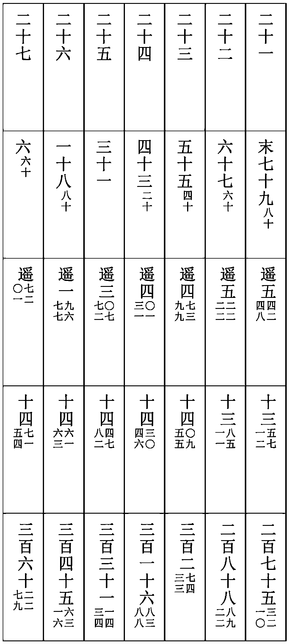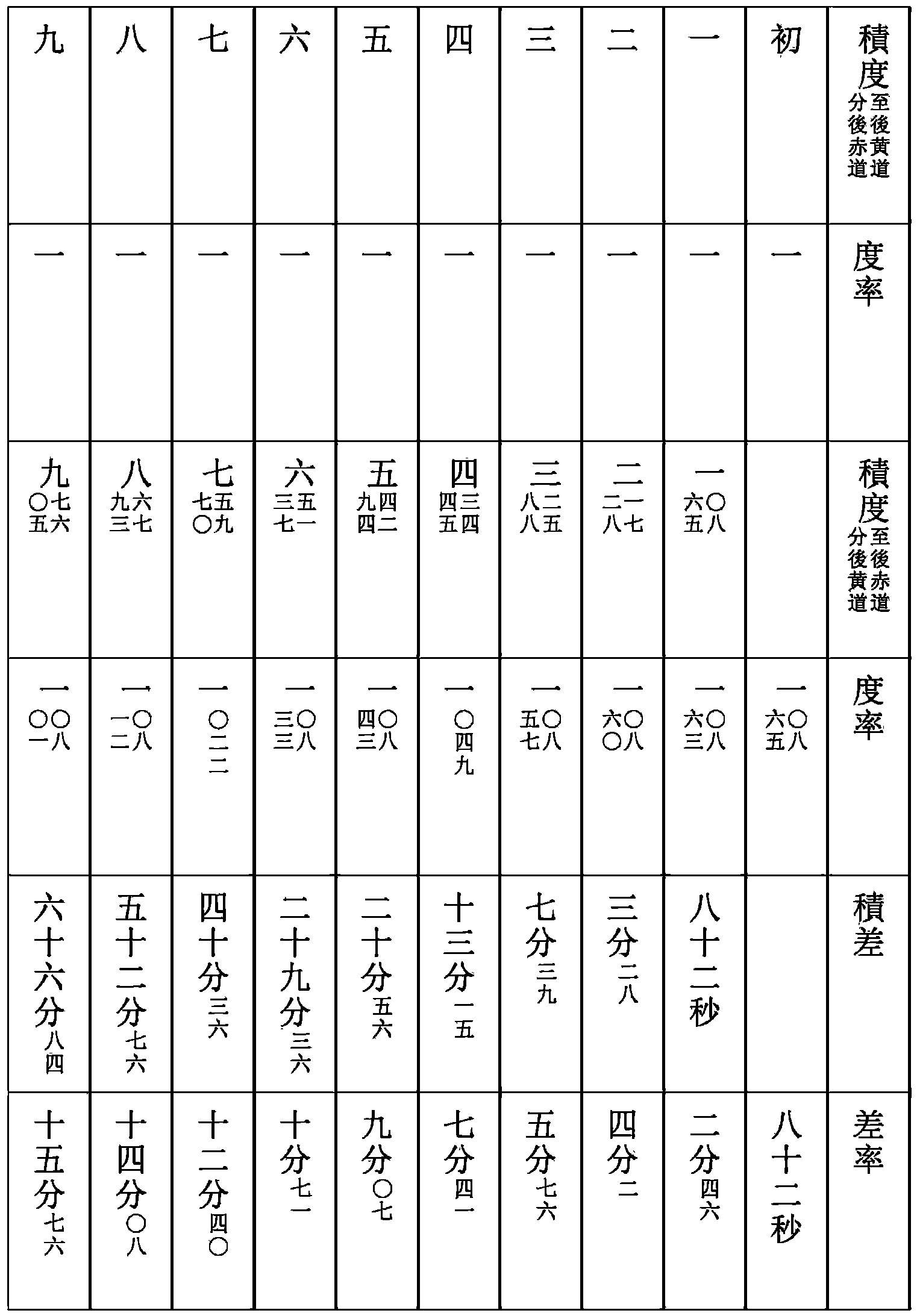 以四正定氣日距後正定氣日爲相距日,以四正定氣晨前夜半日度距後正定氣晨前夜半日度爲相距度,累計相距日之行定度。與相距度相減,餘如相距日而一,爲日差。相距度多爲加,相距度少爲減。以加減四正每日行度率,爲每日行定度。累加四正晨前夜半黄道日度,滿宿次,去之,爲每日晨前夜半黄道日度及分秒。