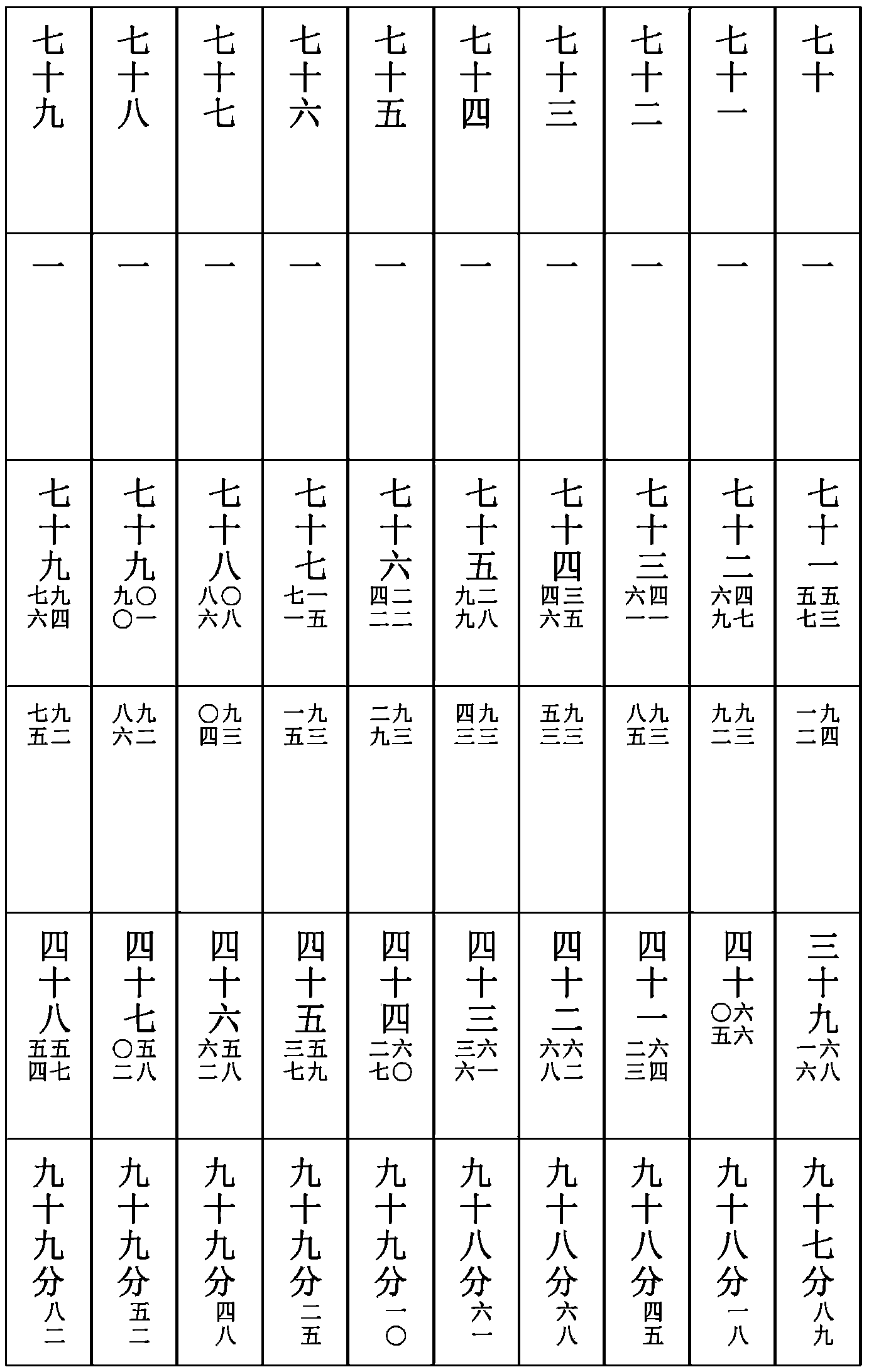 井三十一〇三 鬼二一十一 柳十三 星六三十一 張十七七十九 翼二十〇九 軫十八七十五