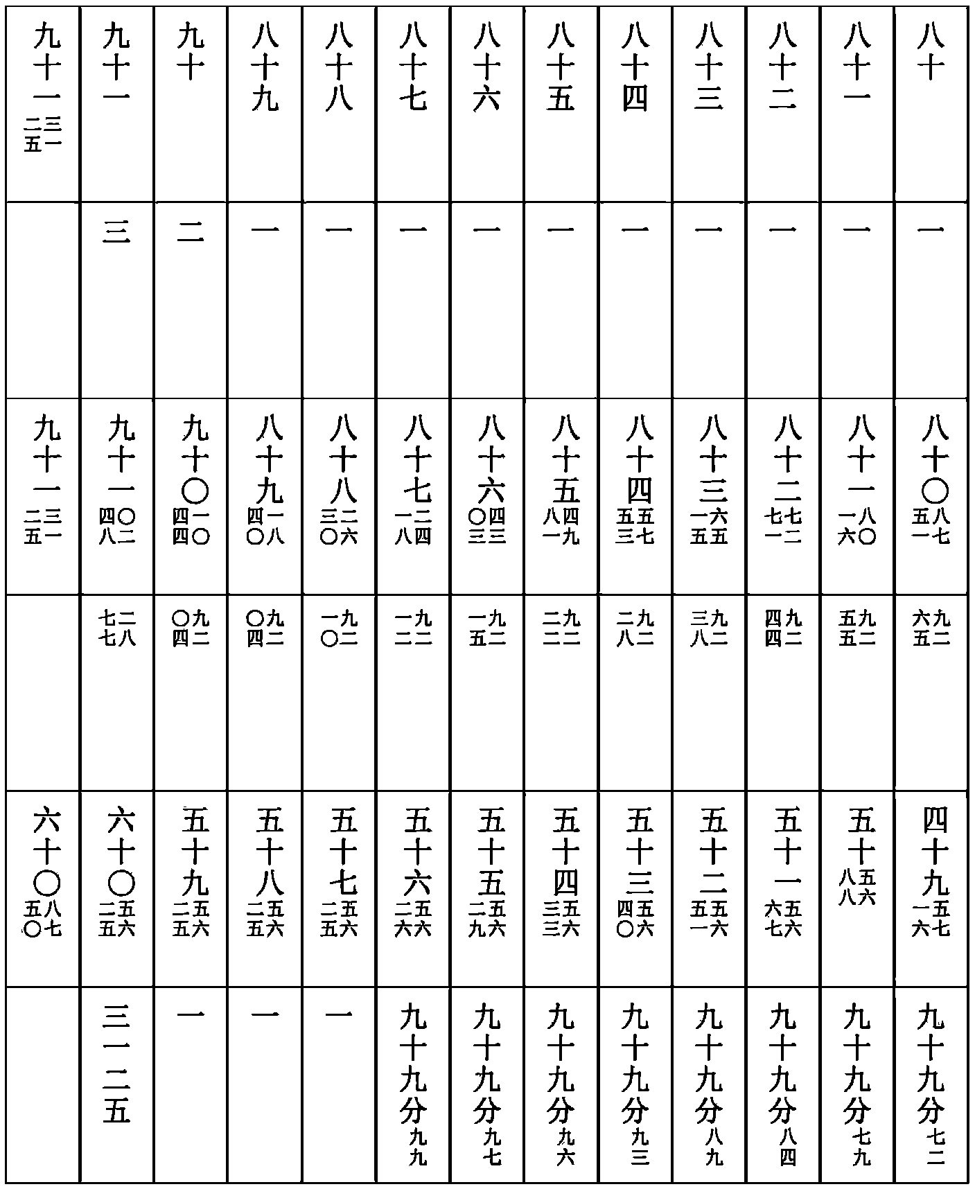 奎十七八十七 婁十二三十六 胃十五八十一 昴十一〇八 畢十六六十 觜初〇五 參十二十八