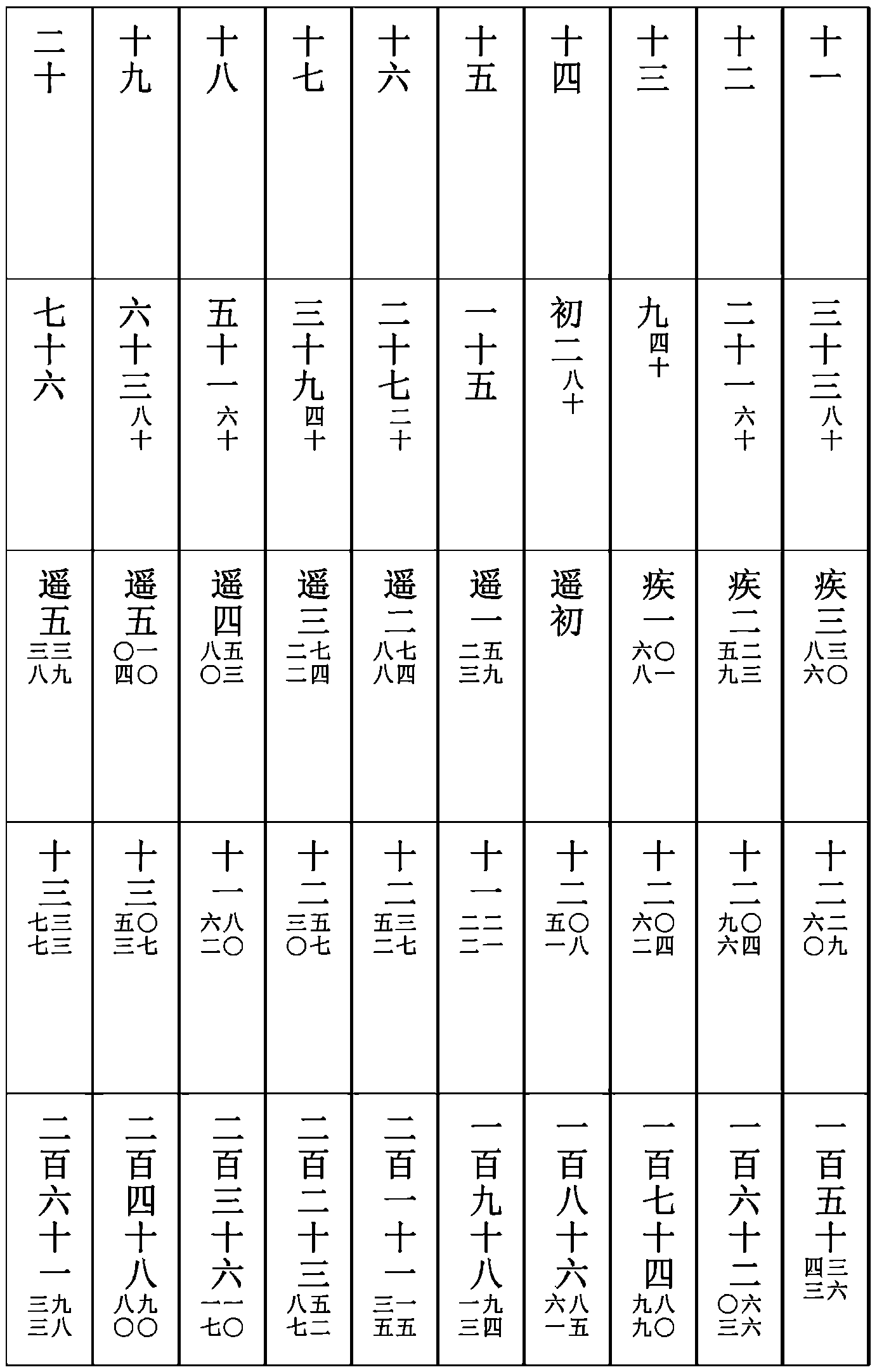 置交終日及分,内減經朔入交日及分,爲朔後平交日。以加經朔入轉,爲朔後平交入轉。在轉中已下,爲疾曆。已上,去之,爲遲曆。