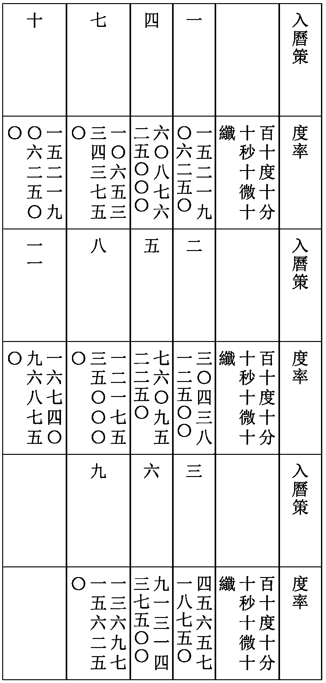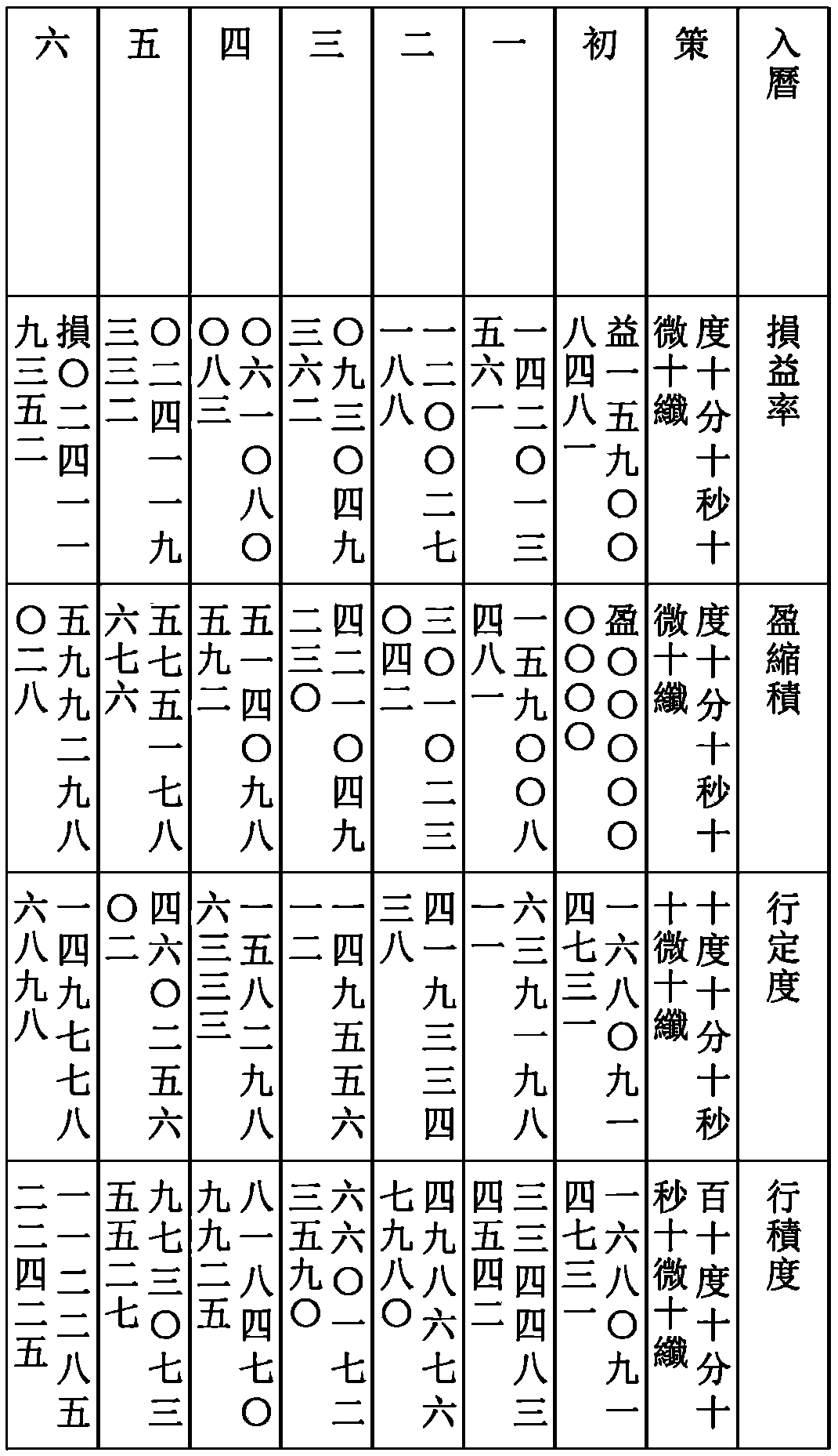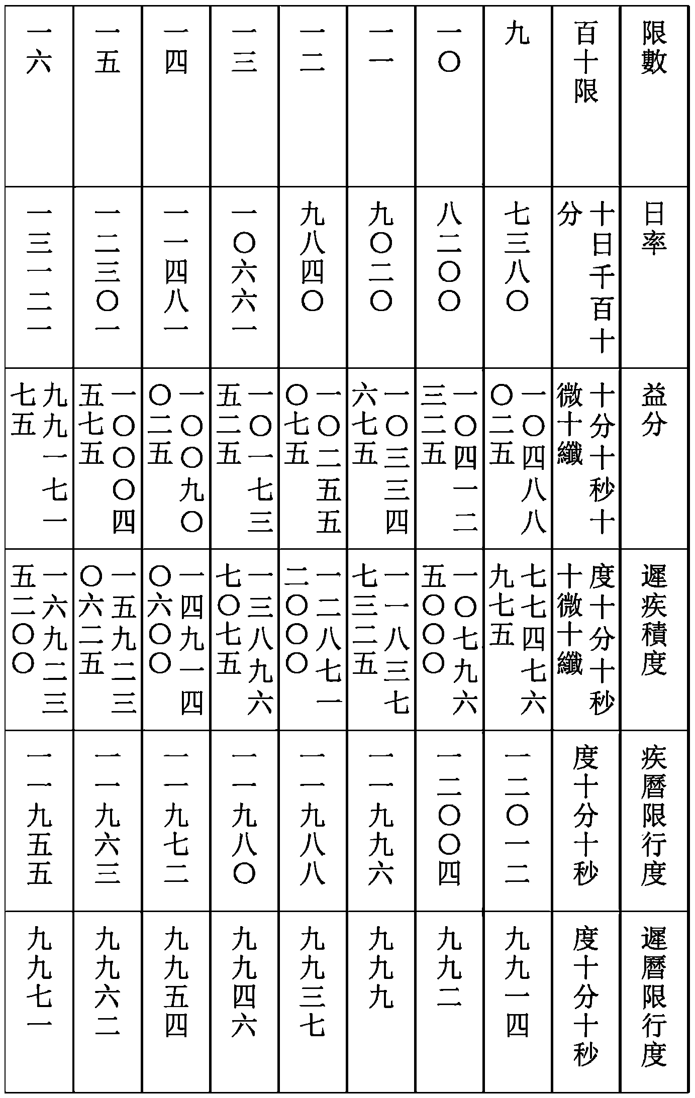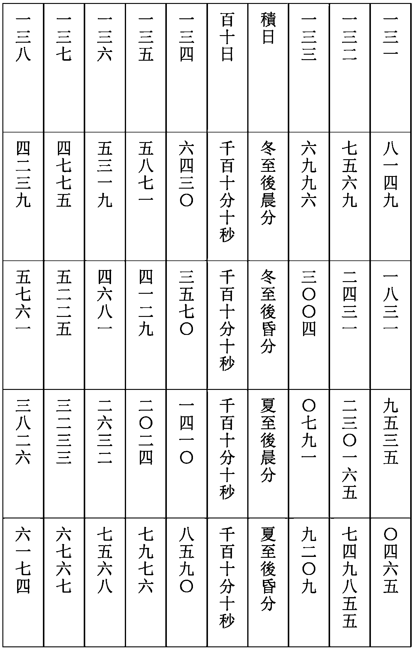 晨分加二百五十分爲日出分,日周一萬分内減晨分爲昏分,昏分減二百五十分爲日入分,又減五千分爲半晝分。故立成只列晨昏分,則出入及半晝分皆具,不必盡列也。