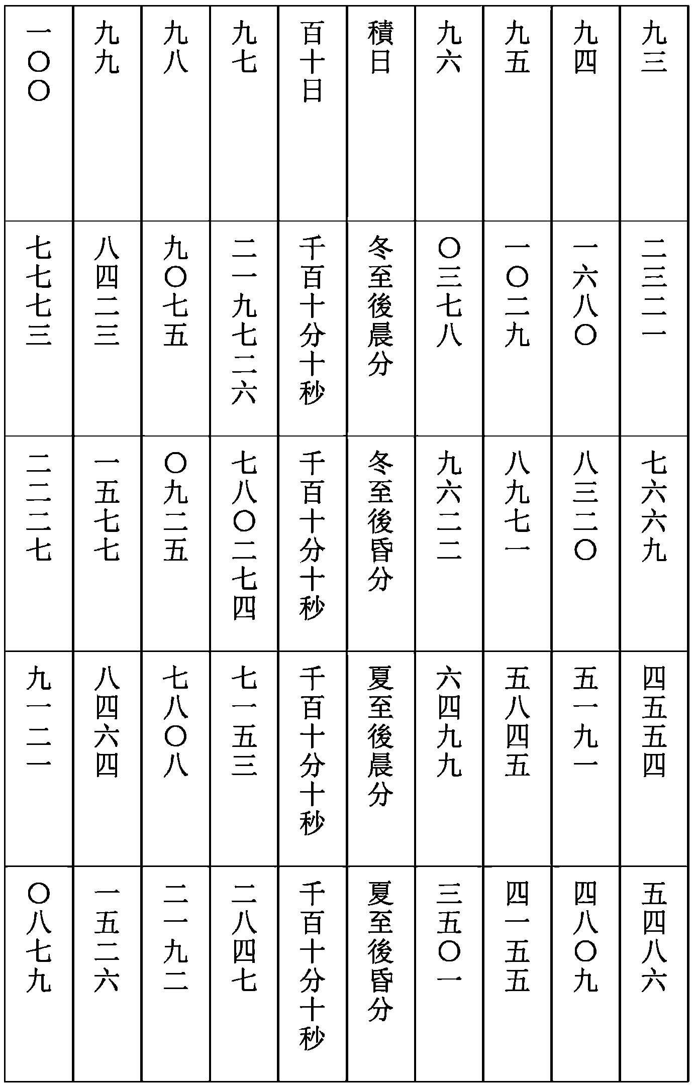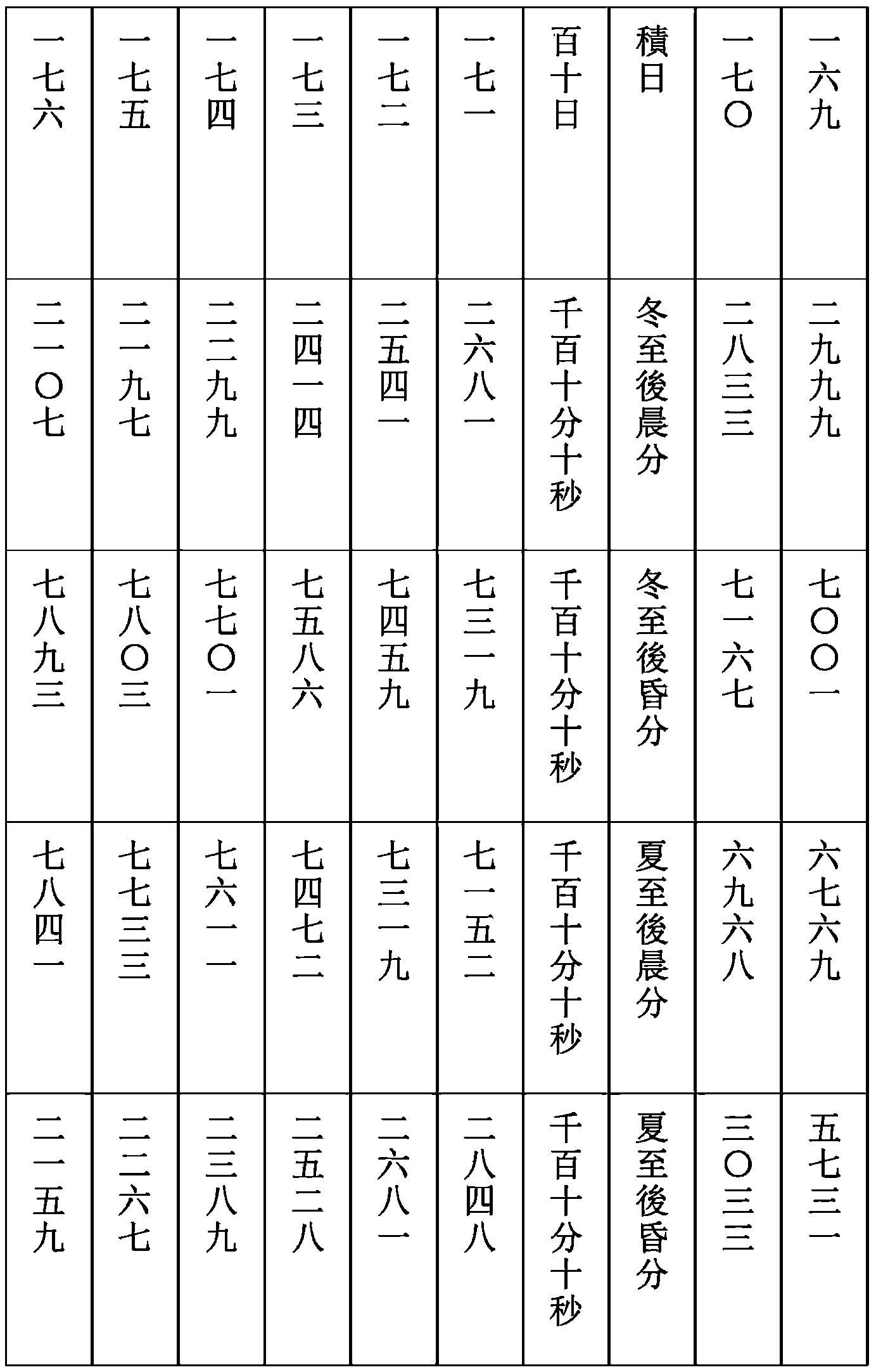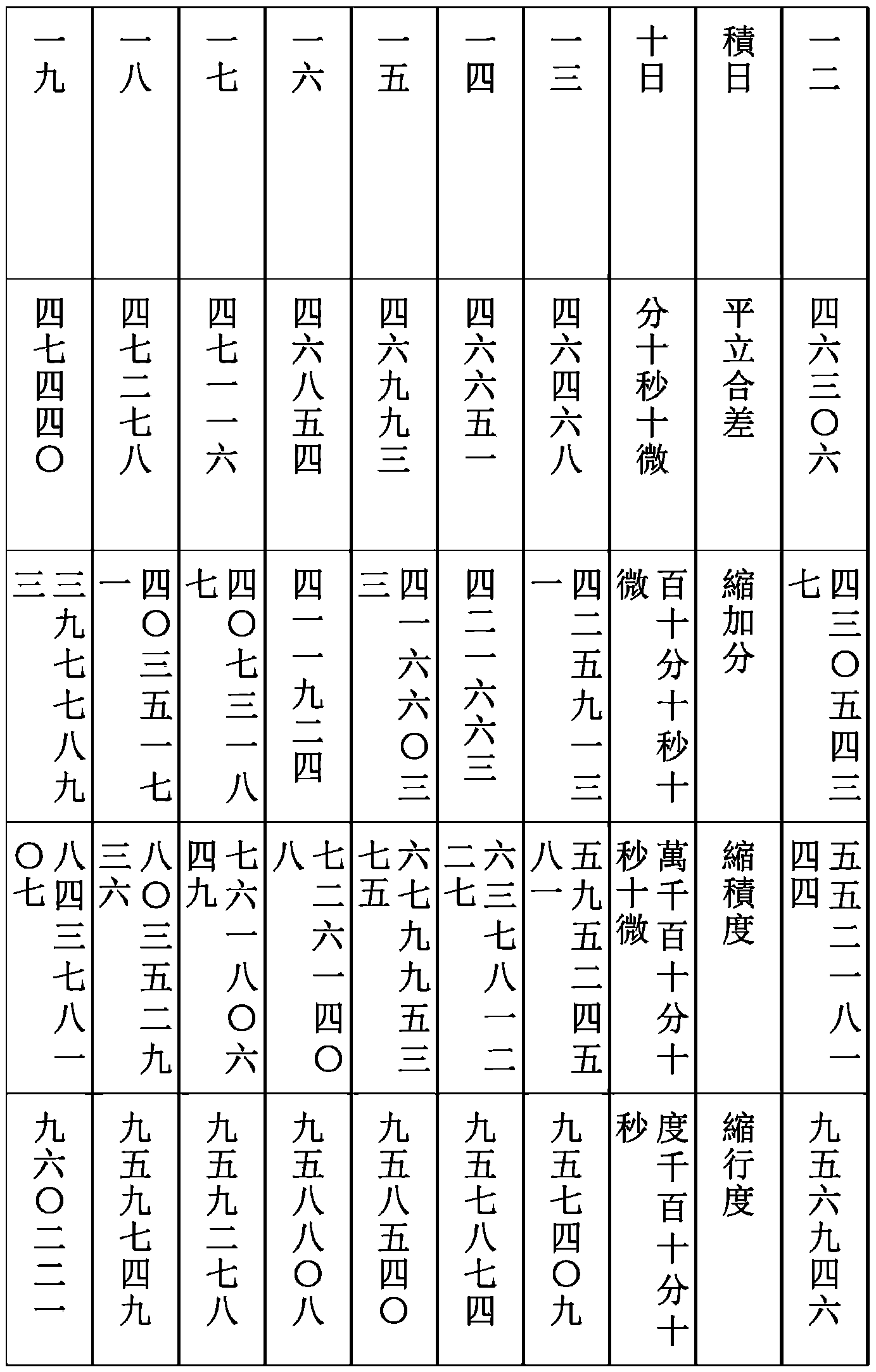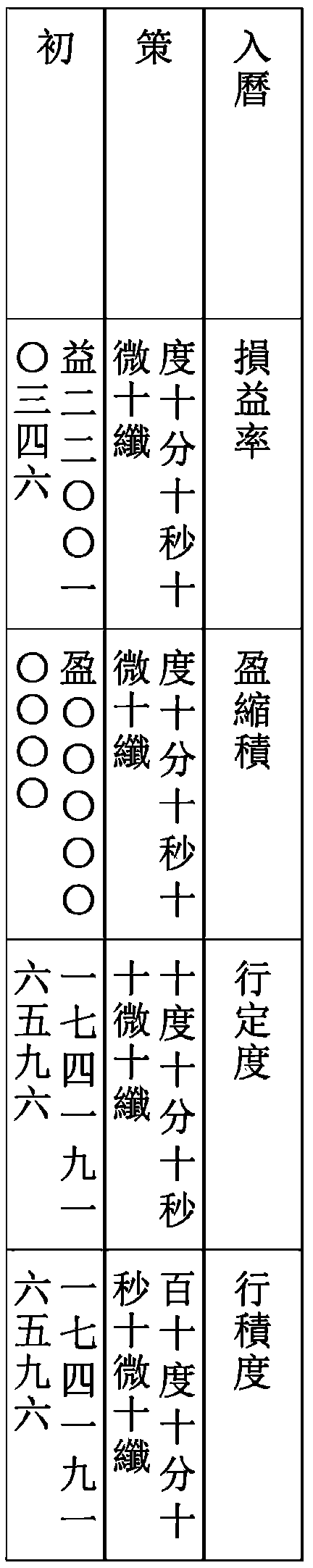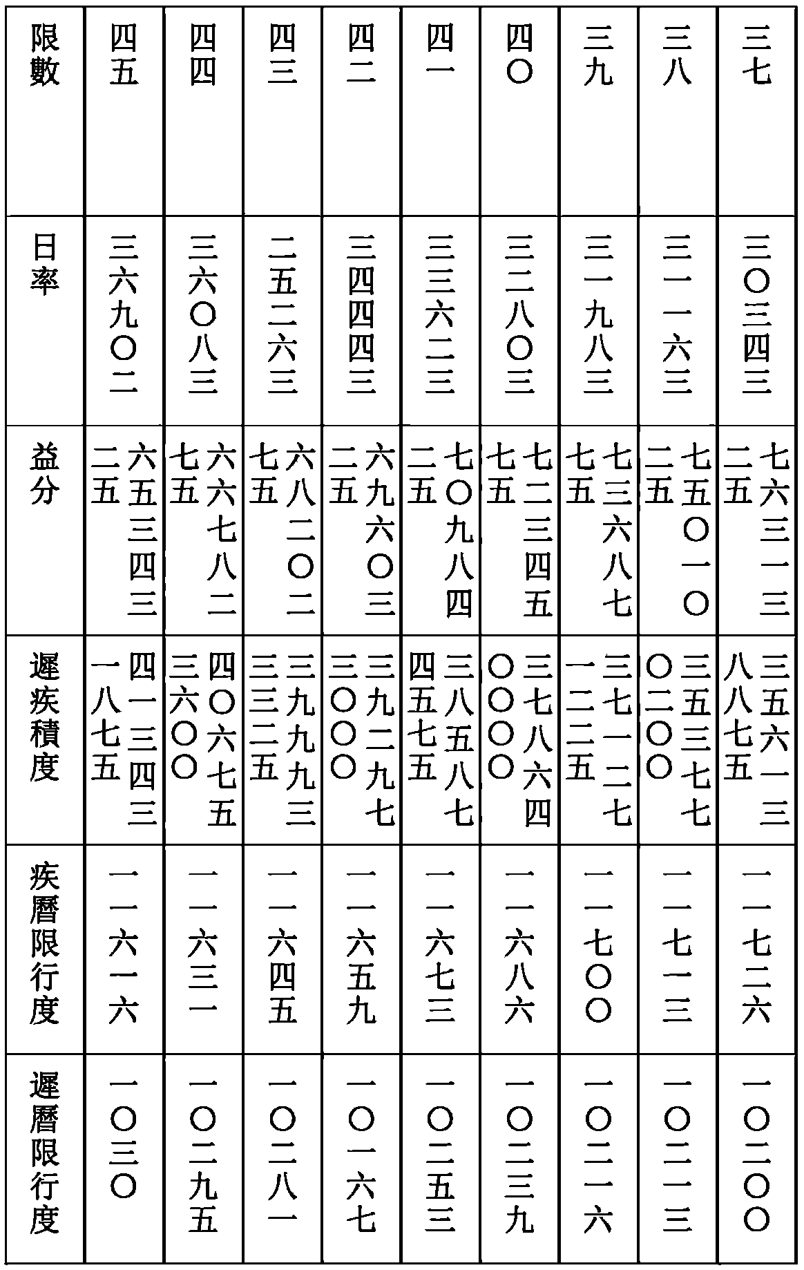 晨分加二百五十分爲日出分,日周一萬分内減晨分爲昏分,昏分減二百五十分爲日入分,又減五千分爲半晝分。故立成只列晨昏分,則出入及半晝分皆具,不必盡列也。