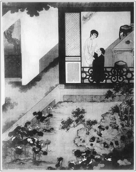婦人接著,茶湯畢,西門慶吩咐玳安回馬家去,明日來接。玳安去了。李瓶兒叫迎春盒兒內取出頭面來,與西門慶過目。黃烘烘火焰般一副好頭面,收過去,單等二十四日行禮,出月初四日准娶。婦人滿心歡喜,連忙安排酒來,和西門慶暢飲開懷。張眉一路寫去,總覺滿心滿意之筆,為下文一冷反照。故知與前將娶玉樓時別金蓮文字遙對也。吃了一回,使丫鬟房中搽抹涼席乾淨。兩個在紗帳之中,香焚蘭麝,衾展鮫綃,脫去衣裳,並肩疊股,飲酒調笑。良久,春色橫眉,淫心蕩漾。西門慶先和婦人雲雨一回,然後乘著酒興,坐於床上,令婦人橫躺於衽席之上,與他品簫。但見: