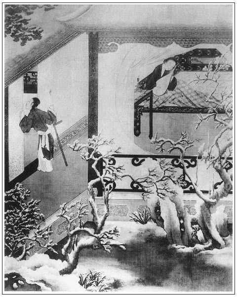 不說西門慶在夏提刑家飲酒,單表潘金蓮見西門慶許多時不進他房裡來,每日翡翠衾寒,芙蓉帳冷。那一日把角門兒開著,在房內銀燈高點,靠定幃屏,彈弄琵琶。等到二三更,使春梅連瞧數次,不見動靜。
