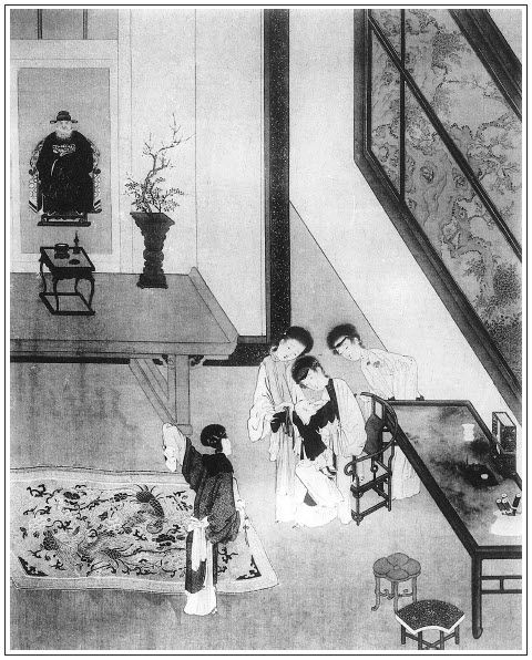 且說那日是潘金蓮生日,有吳大妗子、潘姥姥、楊姑娘、郁大姐,都在月娘上房坐的。見廟裡送了齋來,又是許多羹果插卓禮物,擺了四張桌子,還擺不下,都亂出來觀看。金蓮便道:「李大姐,你還不快出來看哩!你家兒子師父廟裡送禮來了,張旁偏分辨。又有他的小道冠髻,道衣兒。噫,繡旁宛然。你看,又是小履鞋兒!」孟玉樓走向前,拿起來手中看,說道:「大姐姐,你看道士家也恁精細,這小履鞋,白綾底兒,都是倒扣針兒方勝兒,鎖的這雲兒又且是好。我說他敢有老婆!不然,怎的扣捺的恁好針腳兒?」吳月娘道:「沒的說。他出家人,那裡有老婆!繡旁畢竟老實。想必是僱人做的。」潘金蓮接過來說:「道士有老婆,像王師父和大師父會挑的好汗巾兒,莫不是也有漢子?」繡眉玉樓因針線之細而想及道士有老婆;金蓮又因老婆一語想及尼姑有漢子。一層深一層,二美何等穎悟。張夾插入和尚。王姑子道:「道士家,掩上個帽子,那裡不去了!似俺這僧家,行動就認出來。」繡眉王姑子似微露真情,又似明作戲謔,說得帶水拖泥,妙甚。金蓮說道:「我聽得說,你住的觀音寺背後就是玄明觀。常言道:男僧寺對著女僧寺,沒事也有事。」月娘道:「這六姐,好恁羅說白道的!」金蓮道:「這個是他師父與他娘娘寄名的紫線鎖。又是這個銀脖項符牌兒,上面銀打的八個字,帶著且是好看。背面墜著他名字,吳什麼元?」棋童道:「此是他師父起的法名吳應元。」金蓮道:「這是個『應』字。」繡眉識字淺,方傳金蓮之神,知此則知前後寄詞題詩,未免墜小傳說也。叫道:「大姐姐,道士無禮,怎的把孩子改了他的姓?」繡旁大議論反為情所掩,可悲。張夾一語說盡癡人俗套。月娘道:「你看不知禮!」張旁反說無禮。因使李瓶兒:「你去抱了你兒子來,穿上這道衣,俺每瞧瞧好不好?」李瓶兒道:「他才睡下,又抱他出來?」金蓮道:「不妨事,你揉醒他。」張旁妙絕。那李瓶兒真個去了。