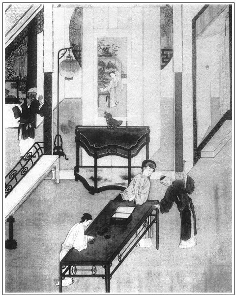 良久,春梅樓上開了門,敬濟往前邊看搬祭祀去了。不一時,喬大戶家祭來擺下。喬大戶娘子並喬大戶許多親眷,靈前祭畢。吳大舅、吳二舅、甘夥計陪侍,請至卷棚內管待。李銘、吳惠彈唱。那日鄭愛月兒家也來上紙弔孝。張夾月兒後來,是與桂姐不同道者。月娘俱令玉樓打發了孝裙束腰,後邊與堂客一同坐的。鄭愛月兒看見李桂姐、吳銀姐都在這裡,便嗔他兩個不對他說:「我若知道爹沒了,有個不來的!你每好人兒,就不會我會兒去。」又見月娘生了孩兒,說道:「娘一喜一憂。惜乎爹只是去世太早了些兒,你老人家有了主兒,也不愁。」月娘俱打發了孝,留坐至晚方散。