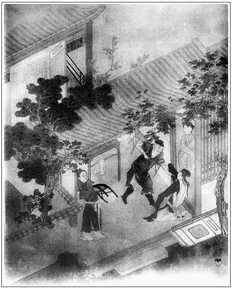 話分兩頭。卻說春梅賣到守備府中,守備見他生的標緻伶俐,舉止動人,心中大喜。與了他三間房住,手下使一個小丫鬟,就一連在他房中歇了三夜。三日,替他裁了兩套衣服。張夾所謂不圖嫁時衣也。薛嫂兒去,賞了薛嫂五錢銀子。又買了個使女扶侍他,立他做第二房。大娘子一目失明,吃長齋念佛,不管閒事。還有生姐兒孫二娘,在東廂居住。春梅在西廂房,各處鑰匙都教他掌管,甚是寵愛他。一日,聽薛嫂兒說,金蓮出來在王婆家聘嫁,這春梅晚夕啼啼哭哭對守備說:張夾金蓮家法。「俺娘兒兩個,在一處廝守這幾年,他大氣兒不著呵著我,把我當親女兒一般看承。只知拆散開了,不想今日他也出來了,你若肯娶將他來,俺娘兒每還在一處,過好日子。」又說他怎的好模樣兒,諸般詞曲都會,又會彈琵琶。聰明俊俏,百伶百俐。屬龍的,今才三十二歲兒。「他若來,奴情願做第三也罷。」繡眉春梅自忘金蓮不得,然如春梅而忘金蓮者多矣,則春梅一段感恩圖報之懷,夫豈易及。於是把守備念轉了,使手下親隨張勝、李安封了二方手帕,二錢銀子,往王婆家相看,果然生的好個出色的婦人。王婆開口指稱他家大娘子要一百兩銀子。張勝、李安講了半日,還了八十兩,那王婆還不肯。走來回守備,又添了五兩,復使二人拿著銀子和王婆說。王婆只是假推他大娘子不肯不轉口兒,要一百兩:「媒人錢不要便罷了,天也不使空人。」繡旁說不要,又找上,貪甚。這張勝、李安只得又拿回銀子來稟守備。